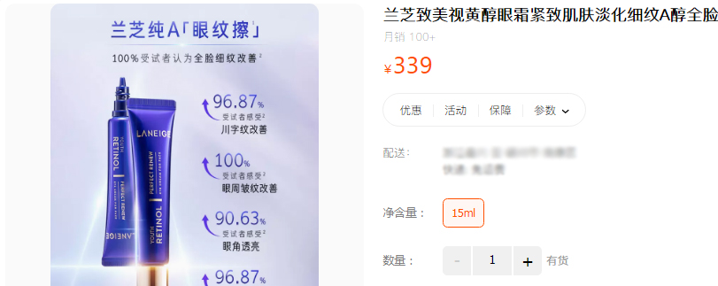 【商品名称】兰芝致美青春视黄醇眼霜30ml