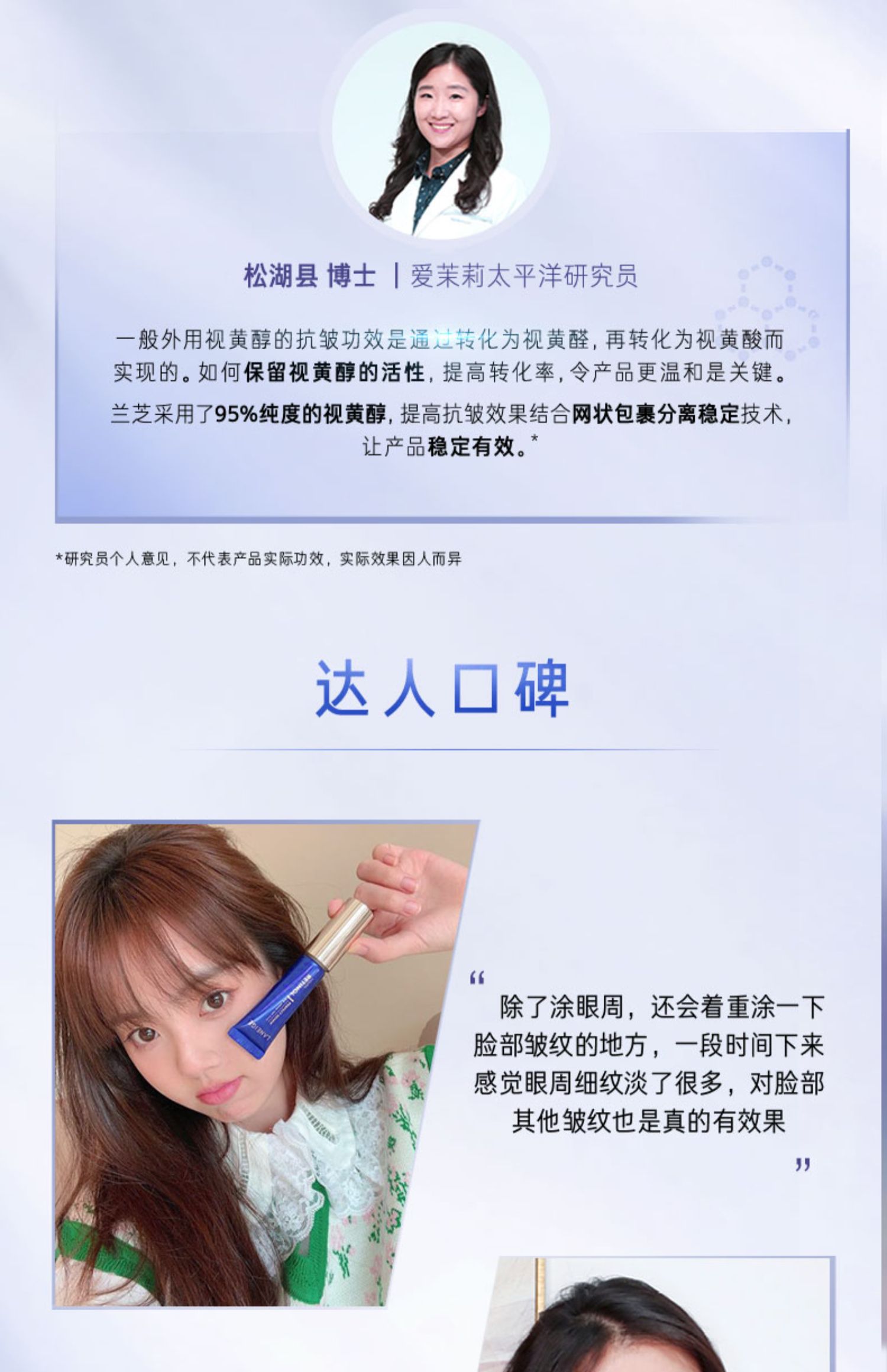 精纯而有效针对眼尾纹,眼下纹,抬头纹等