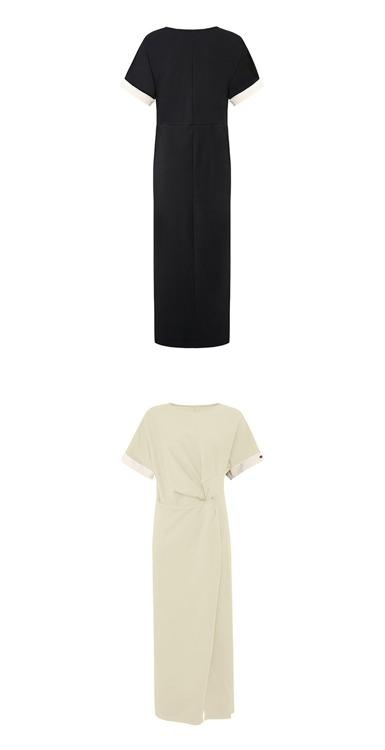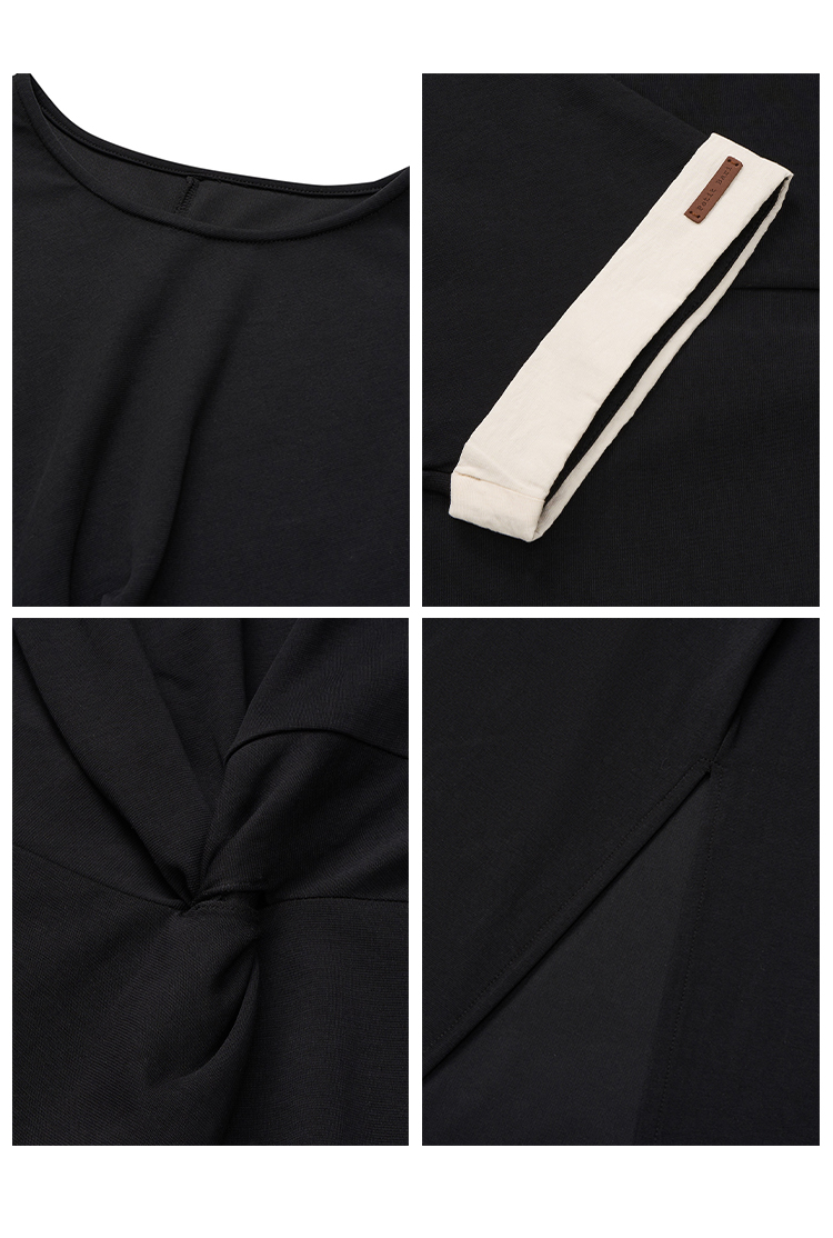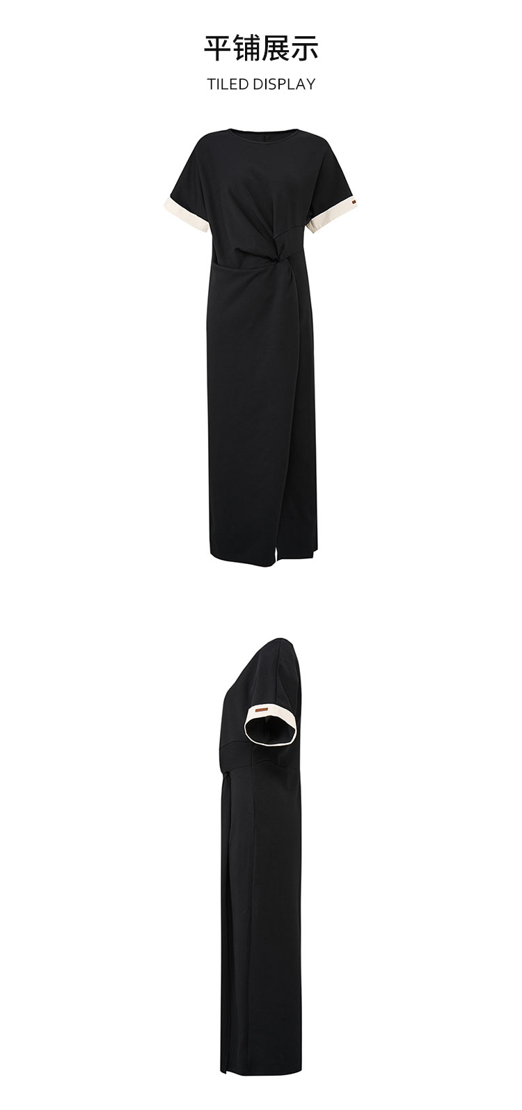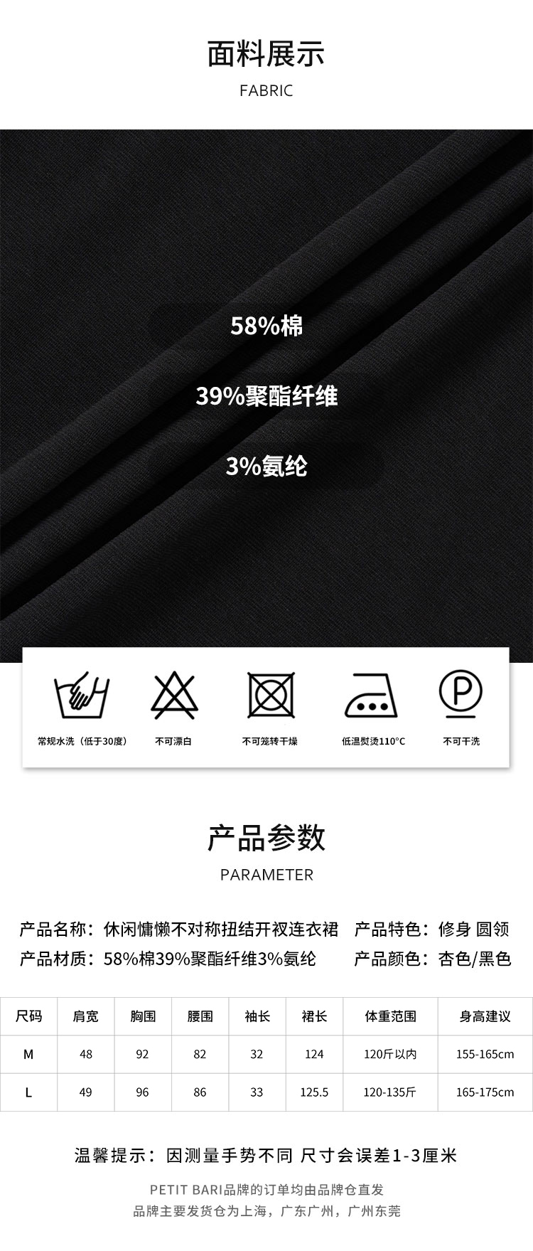 【2件9折】【Petit Bari】(多色)休闲慵懒不对称扭结开衩连衣裙
