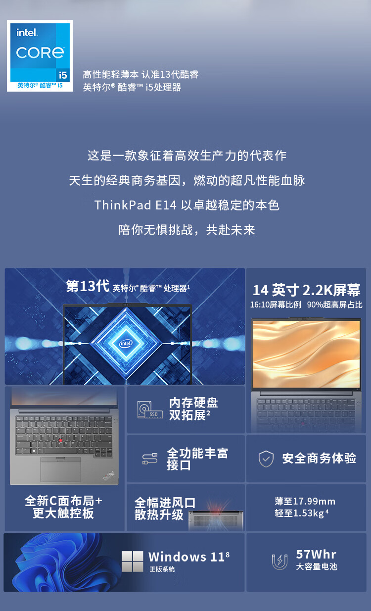 E14-34CD | Ultra5-125H/16G/512GSSD/集显/14"2.2K/win11/2Yr黑色 |