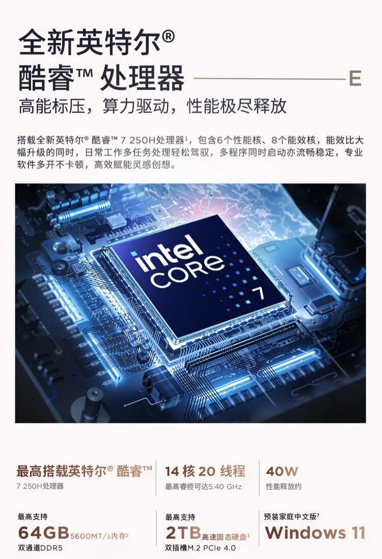 E14-05CD Core版 | Core7-250H/32G/1TSSD/集显/14"2.8K/win11/2Yr黑色 |
