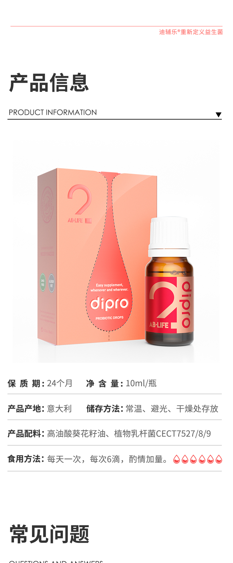 dipro迪辅乐成人益生菌AB-life安洛普大人调理肠胃意大利进口10ml