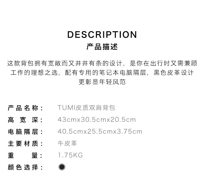 TUMI 背包 TM09603580DL3-F .【刻字后发出的商品,不支持退换货服务】