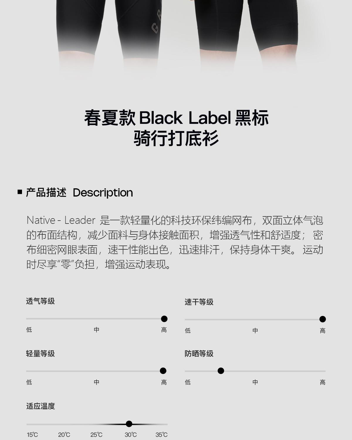 GRC桀骜无尽新款春夏BLACK LABEL黑标快干透气排汗衫骑行服打底男