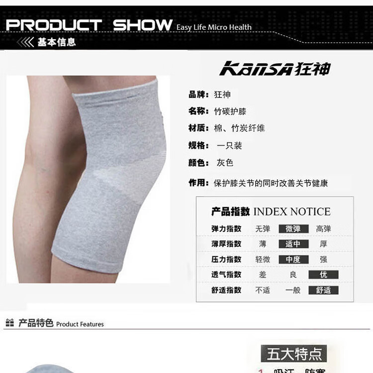 狂神护膝KS2402竹炭