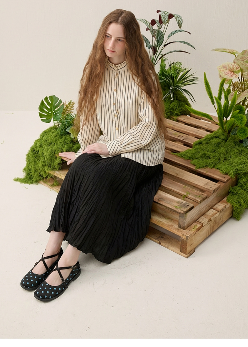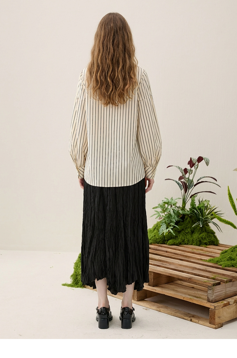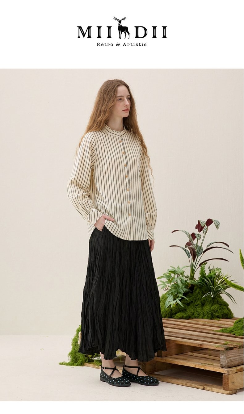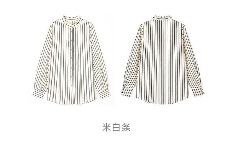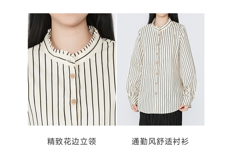 谜底条纹衬衫长袖2026春季新品优雅浪漫全棉廓形衬衣女265MC5023