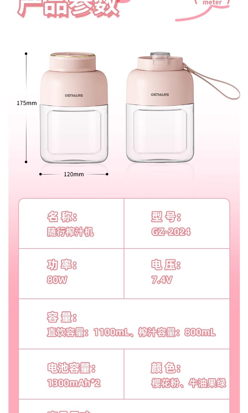 德国OSTMARS榨汁杯大容量多功能便携式双杯榨汁机一体多用吨吨桶