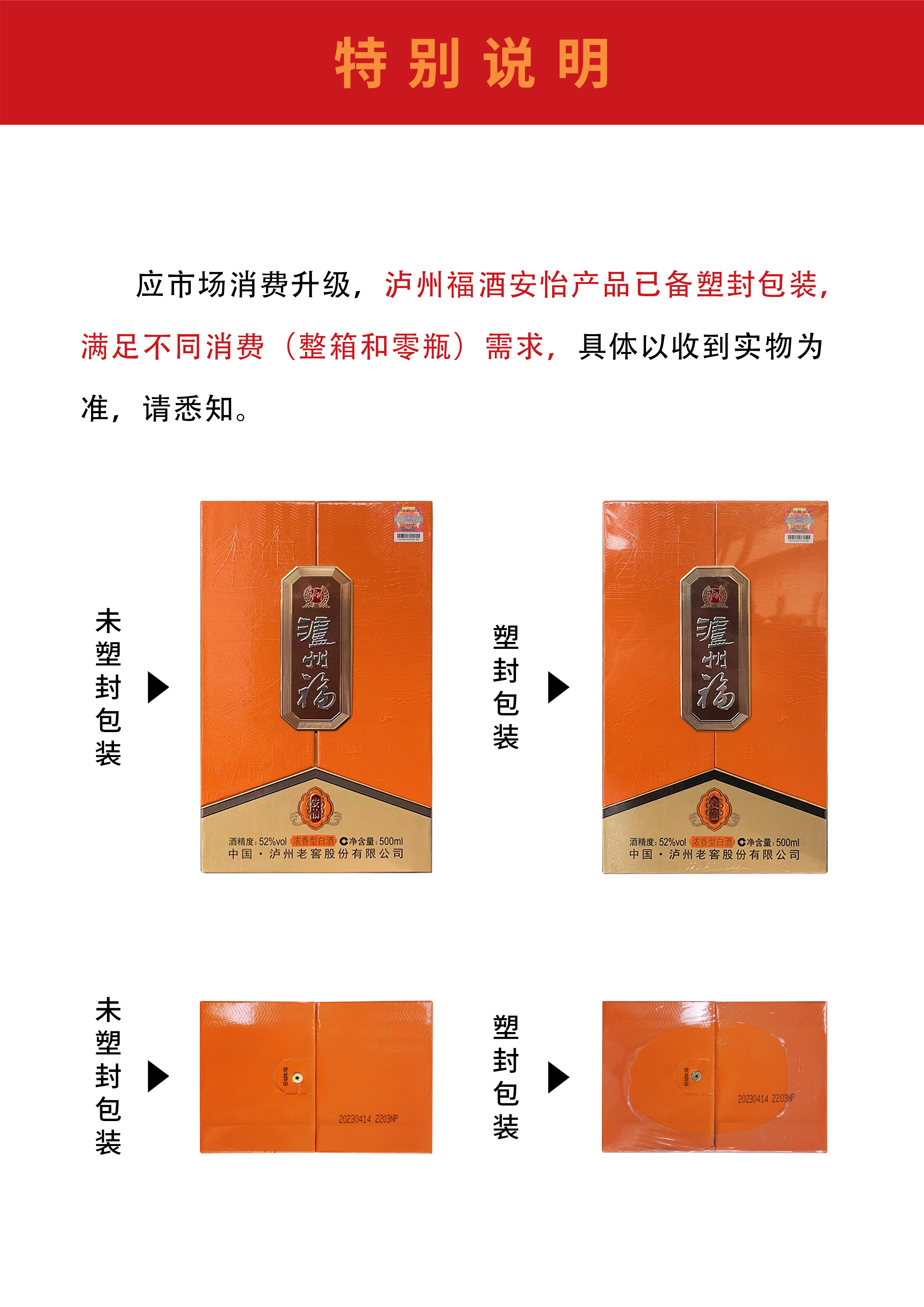 【酒厂直营】52度 泸州福酒 安怡 500ml*6 泸州老窖官方旗舰店(内含礼品袋)