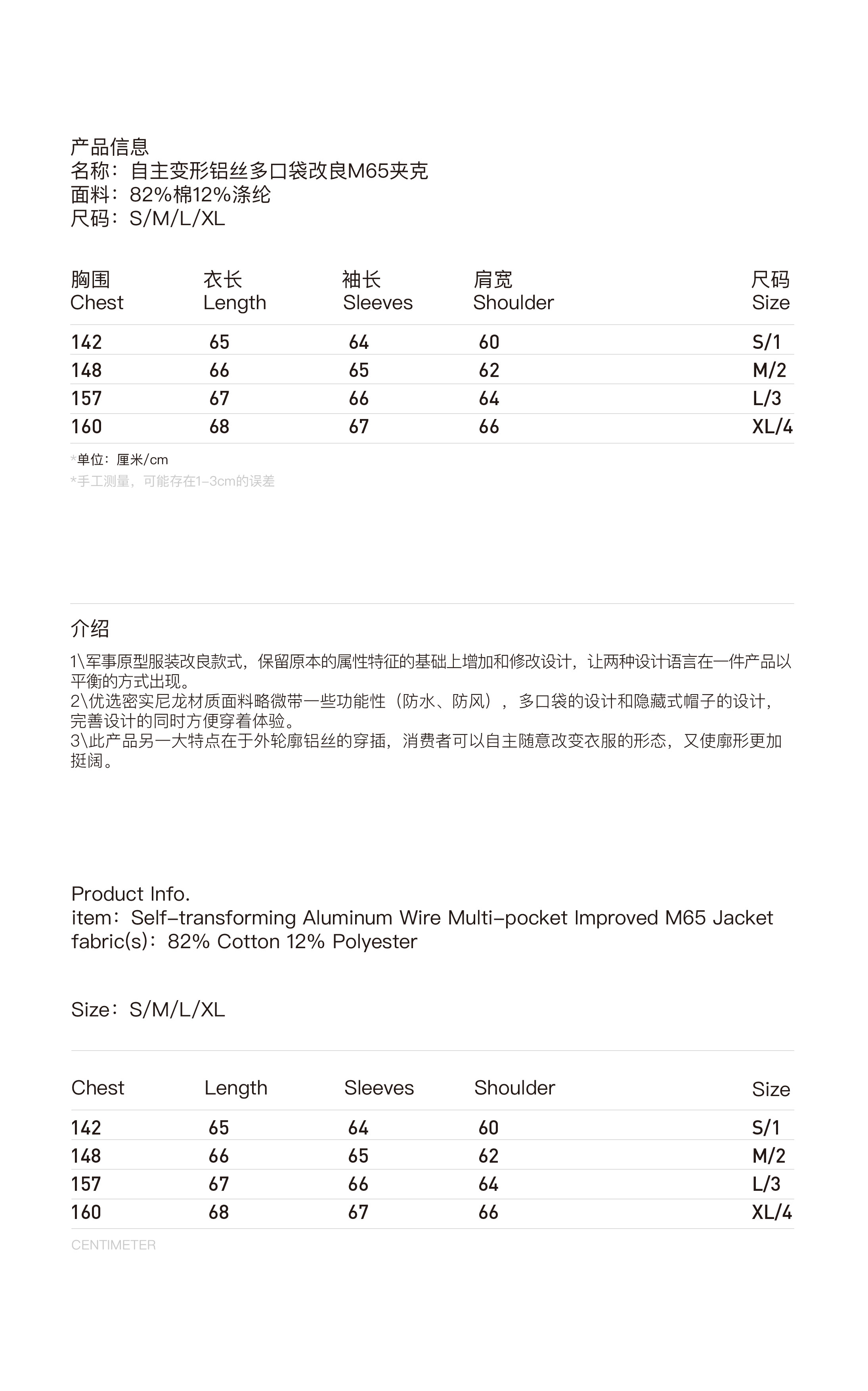 ATTEMPT 定番产品 自主变形铝丝多口袋改良M65夹克