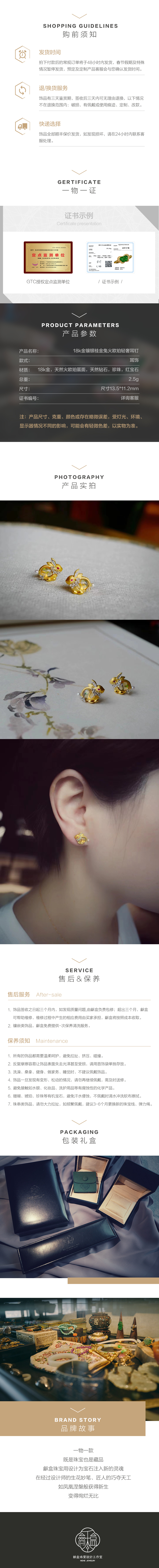 龢盒原创 18k金镶银桂金兔火欧珀轻奢耳钉