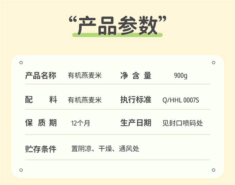 【新品】溢田有机燕麦米900g
