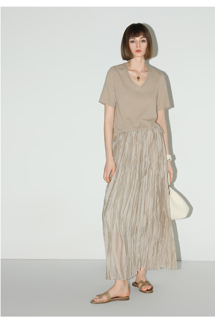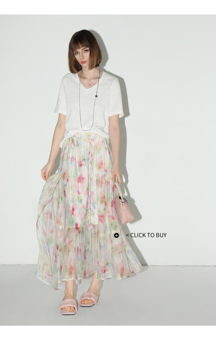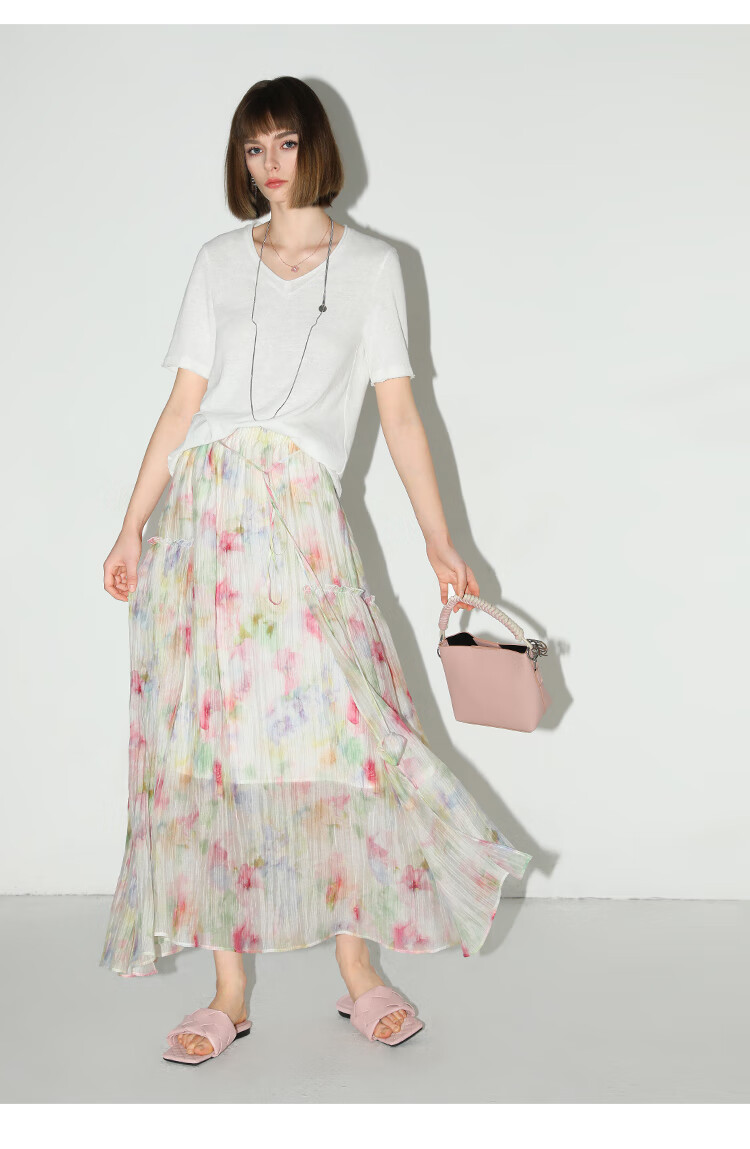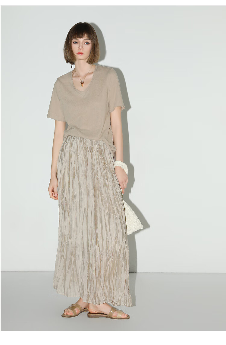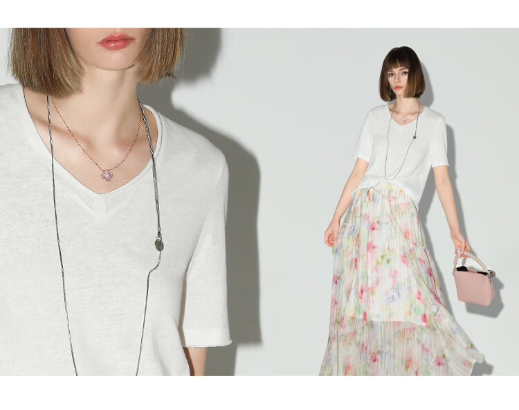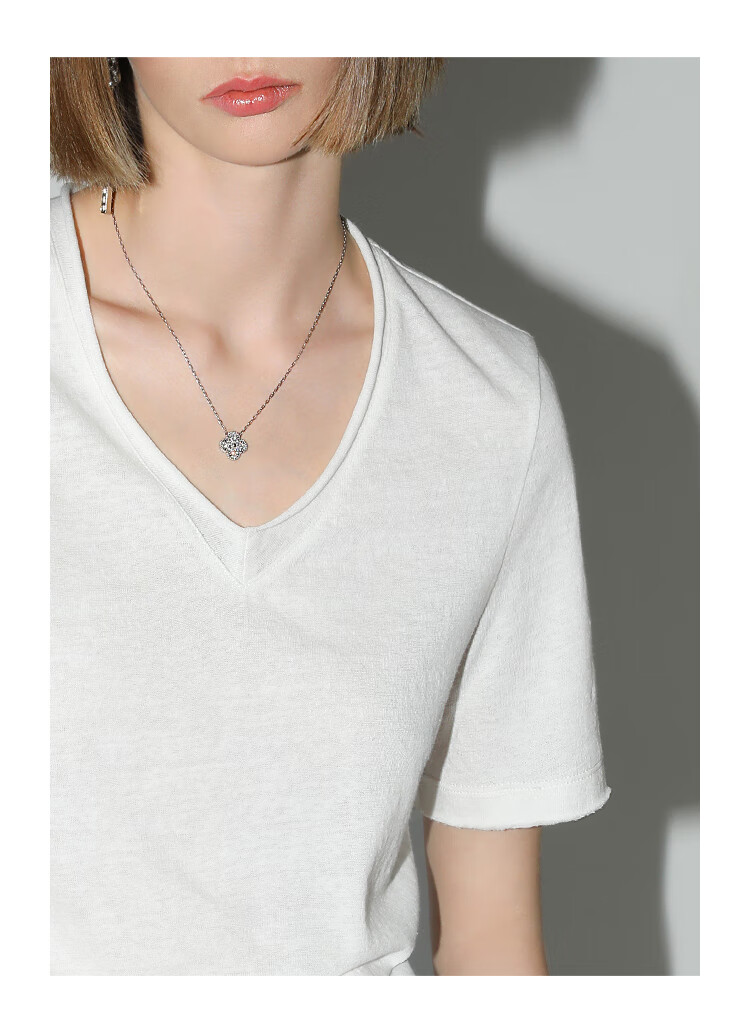 COCOBELLA竹节棉白色短袖T恤基础款V领随性毛边上衣TS7017-2