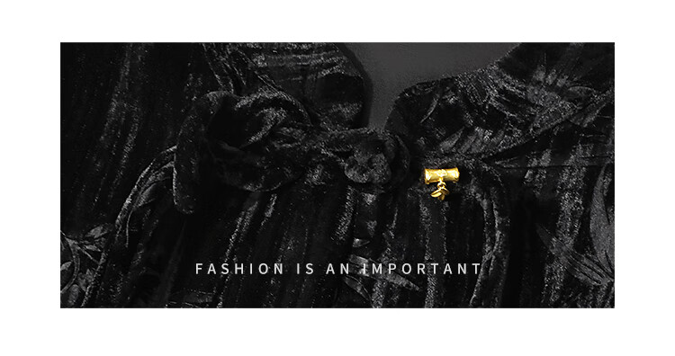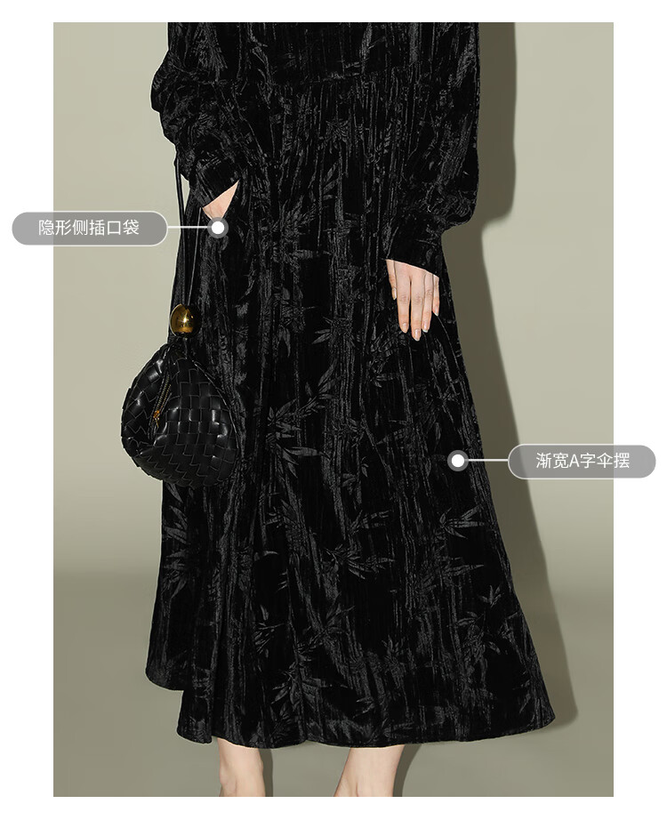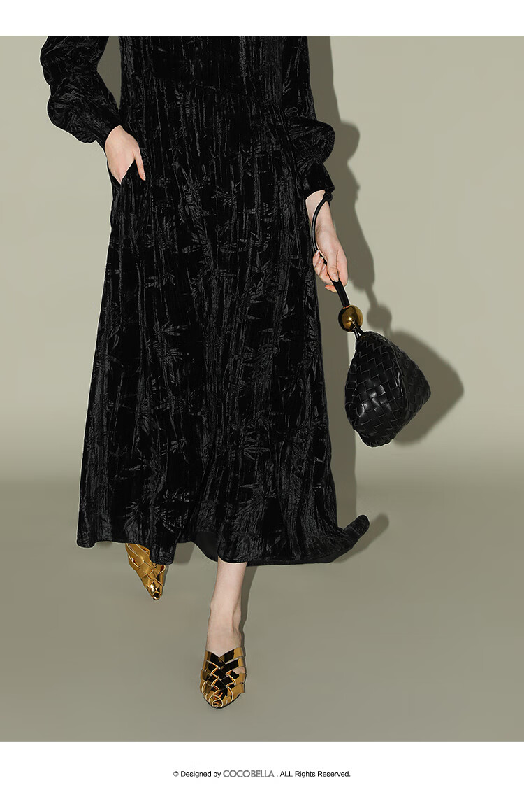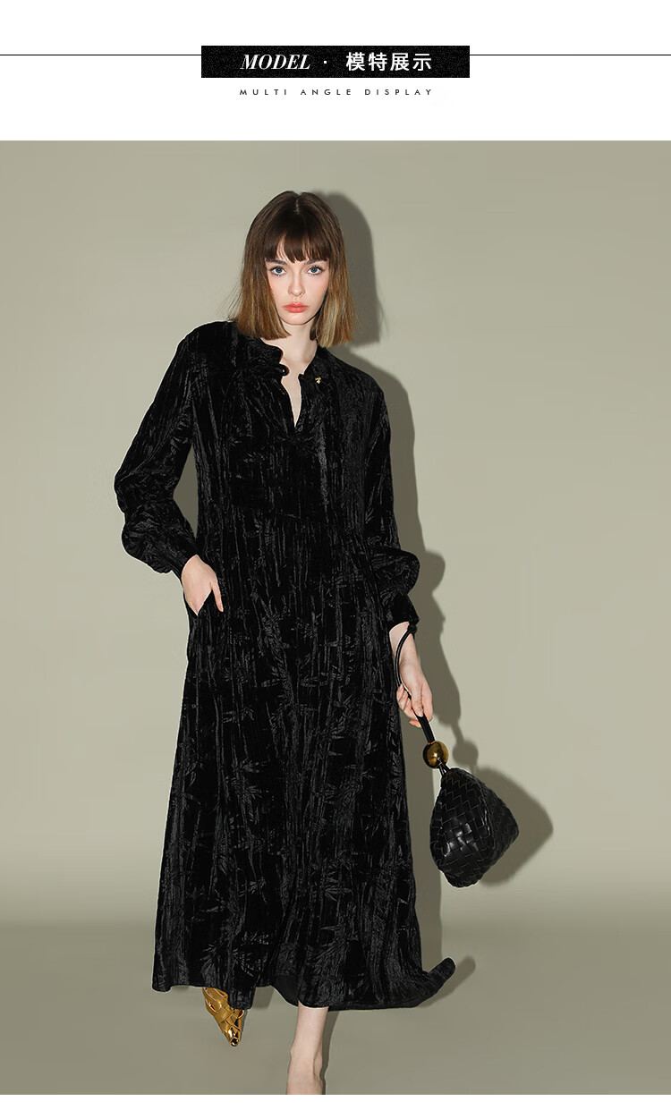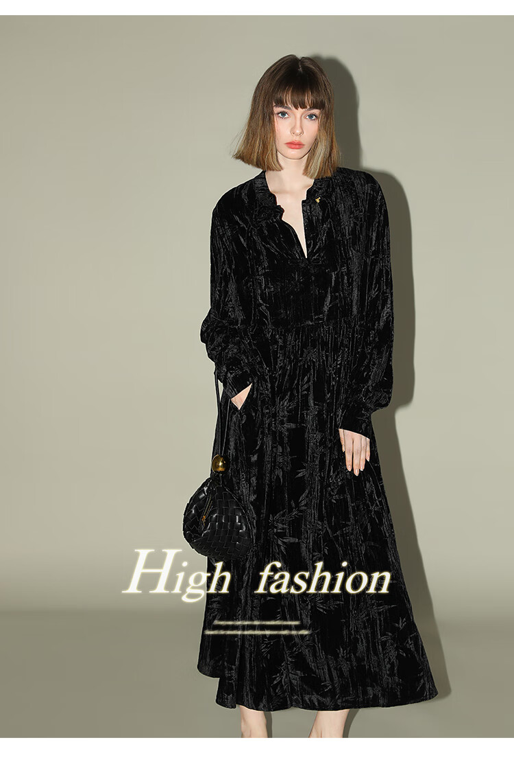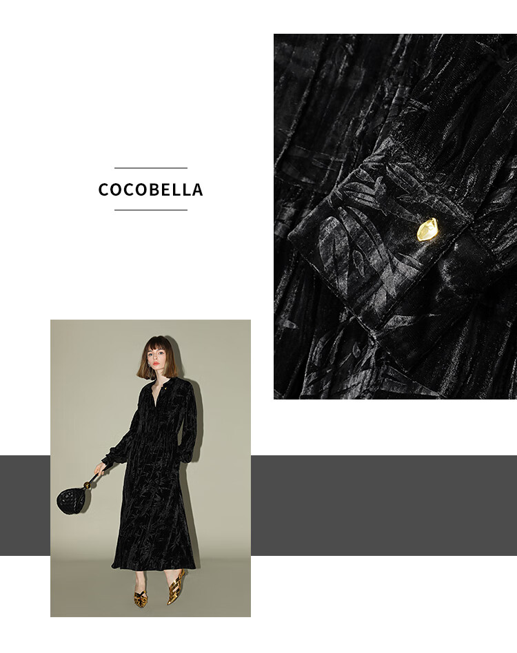 【有赞】COCOBELLA竹叶拓印国风丝绒连衣裙手缝盘扣压褶衬衫裙FR0002B
