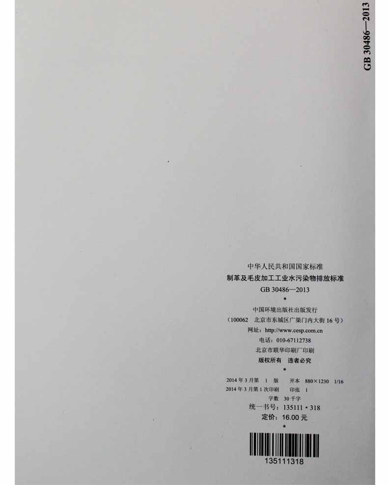 GB 30486-2013 制革及毛皮加工工业水污染物排放标准 135111318