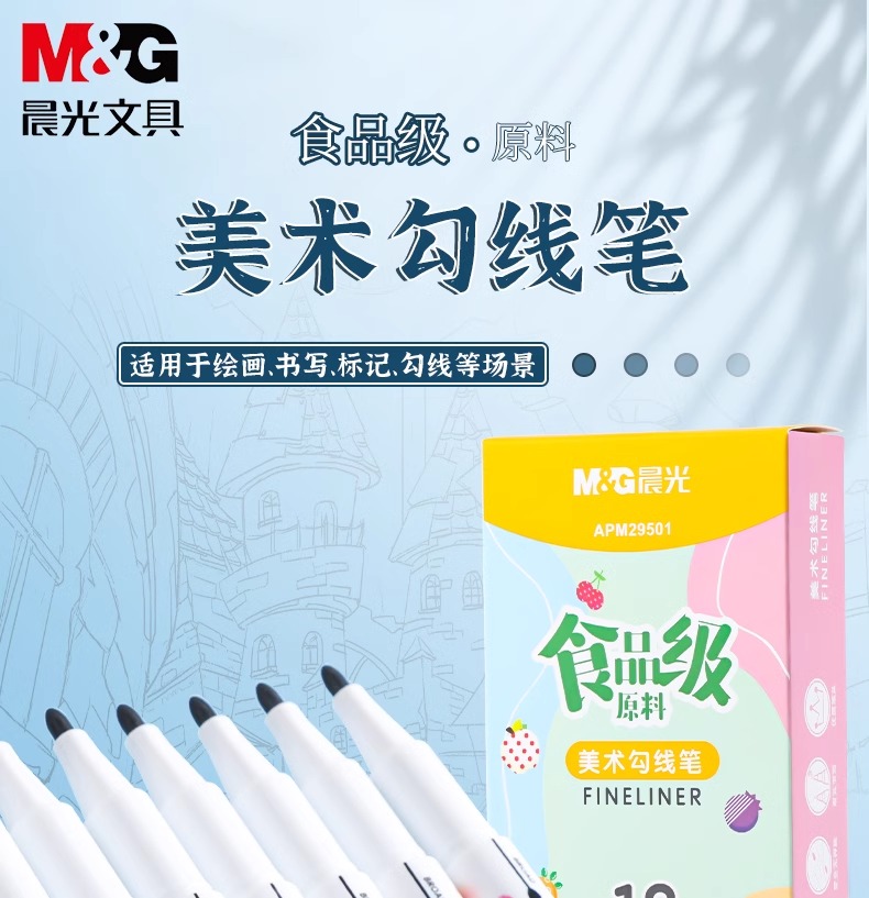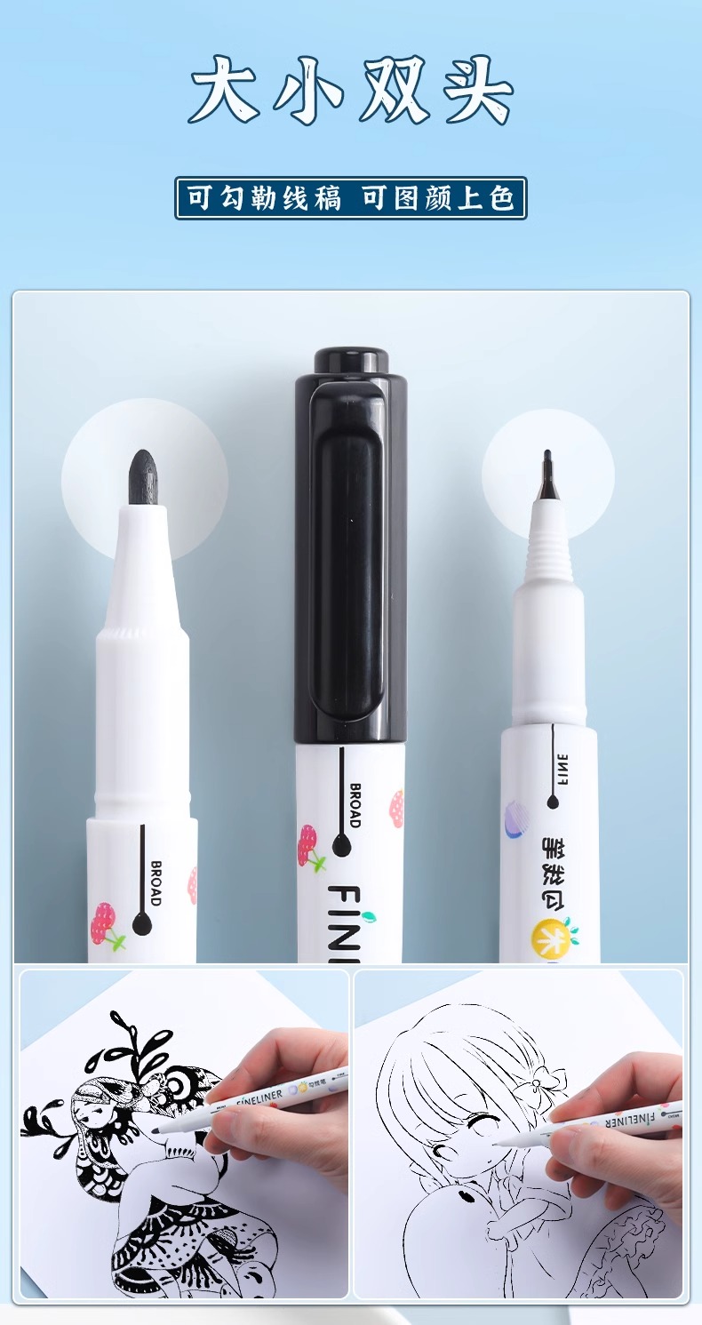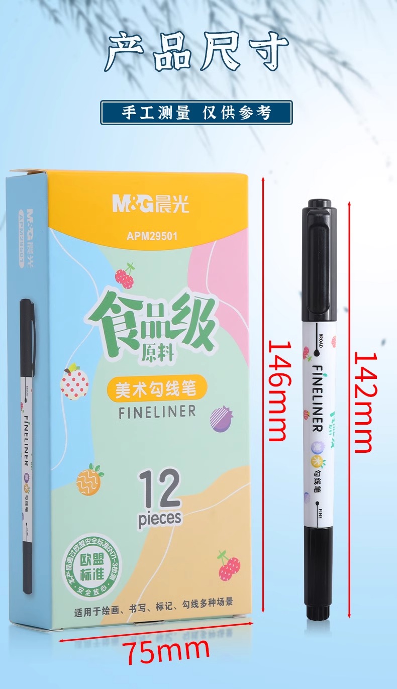 晨光勾线笔线描笔双头食品级美术勾线笔APM29501 1PCS1黑色1支