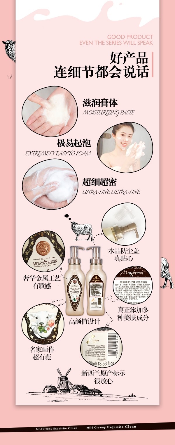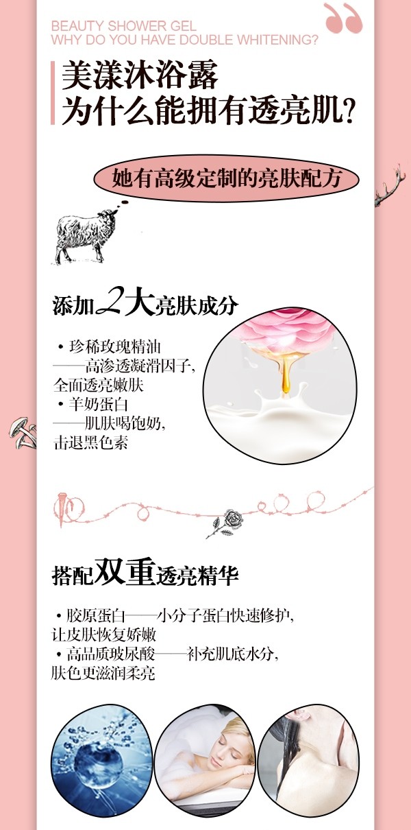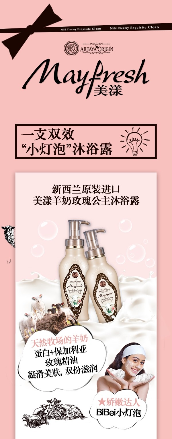 进口美漾羊奶玫瑰公主沐浴露温和滋润烟酰胺嫩白馥郁玫瑰香 400ml(525901)