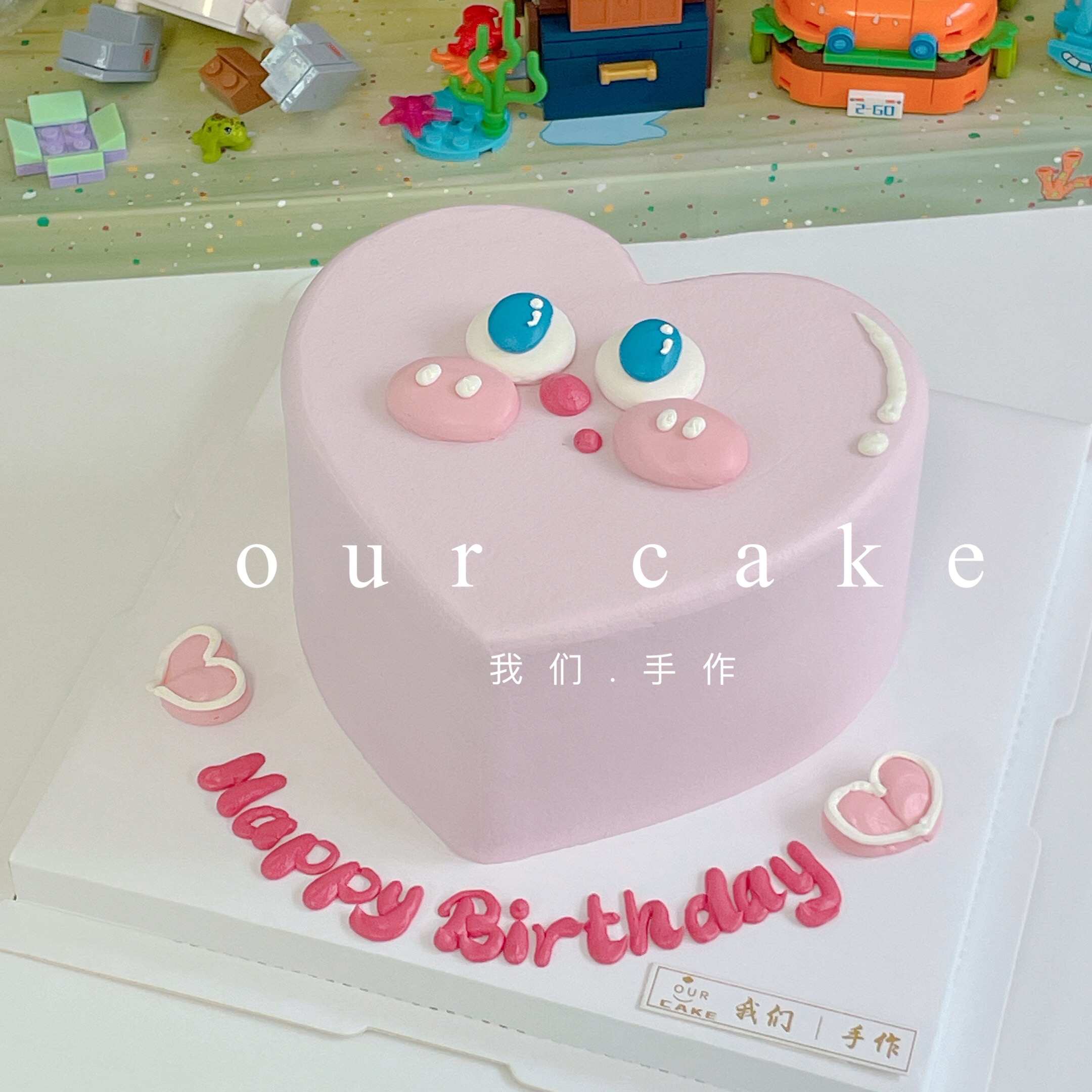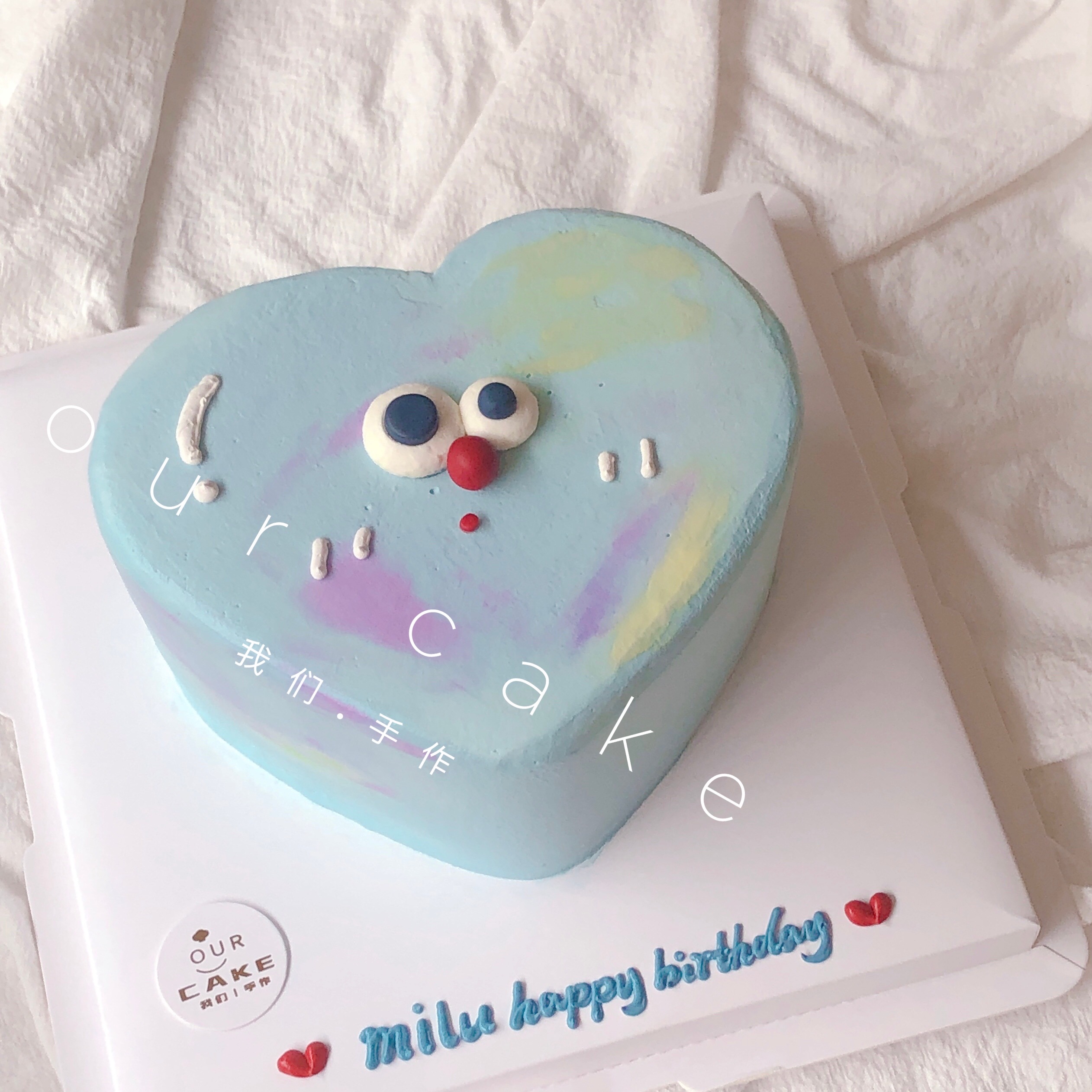 ins风爱心搞怪蛋糕(蓝色粉色两色选择)-低糖处理无添加