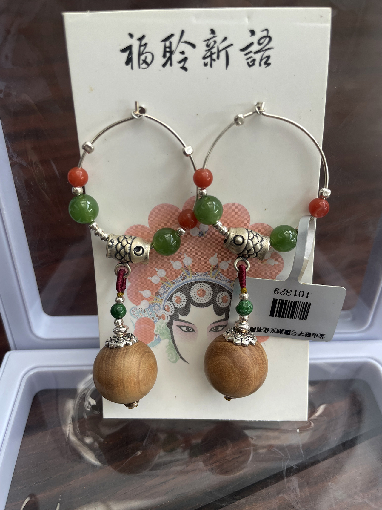 101329°原创老山檀+复古银鱼耳坠