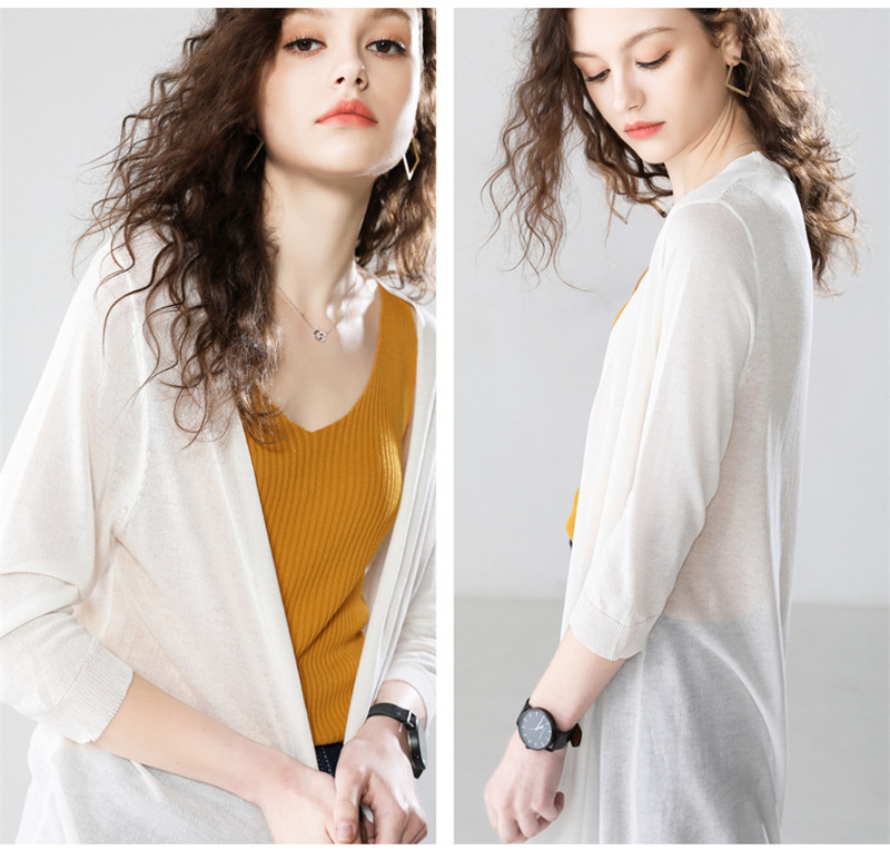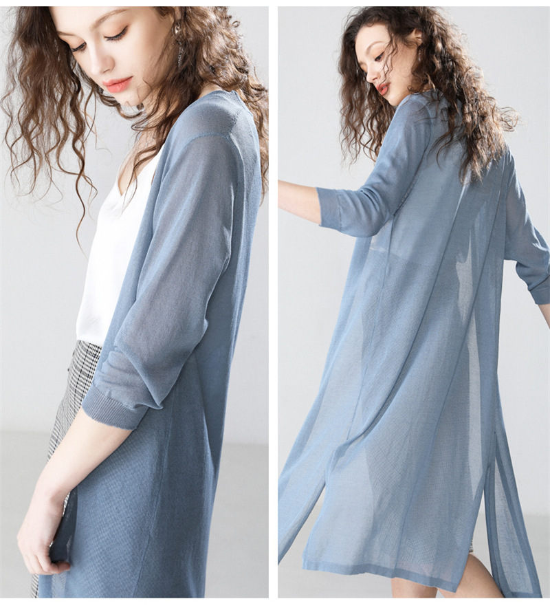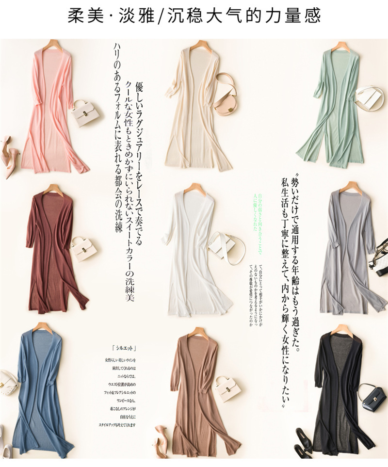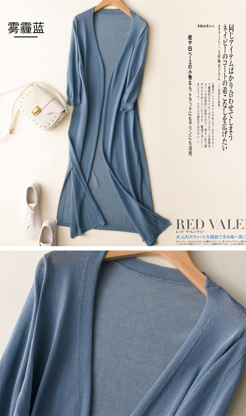 女防晒开衫夏季薄款中长款配裙子毛针织空调衫冰丝外套七分袖宽松