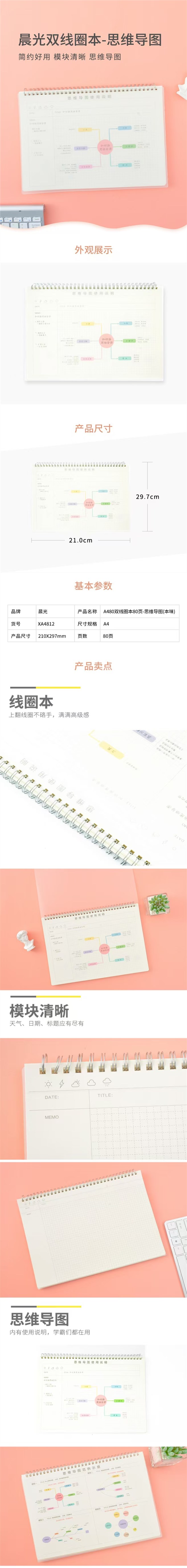 思维导图 A4 晨光文具 本味笔记本 双线圈本子 80页 1本 横向网格概括记忆重点内容复习考试标记