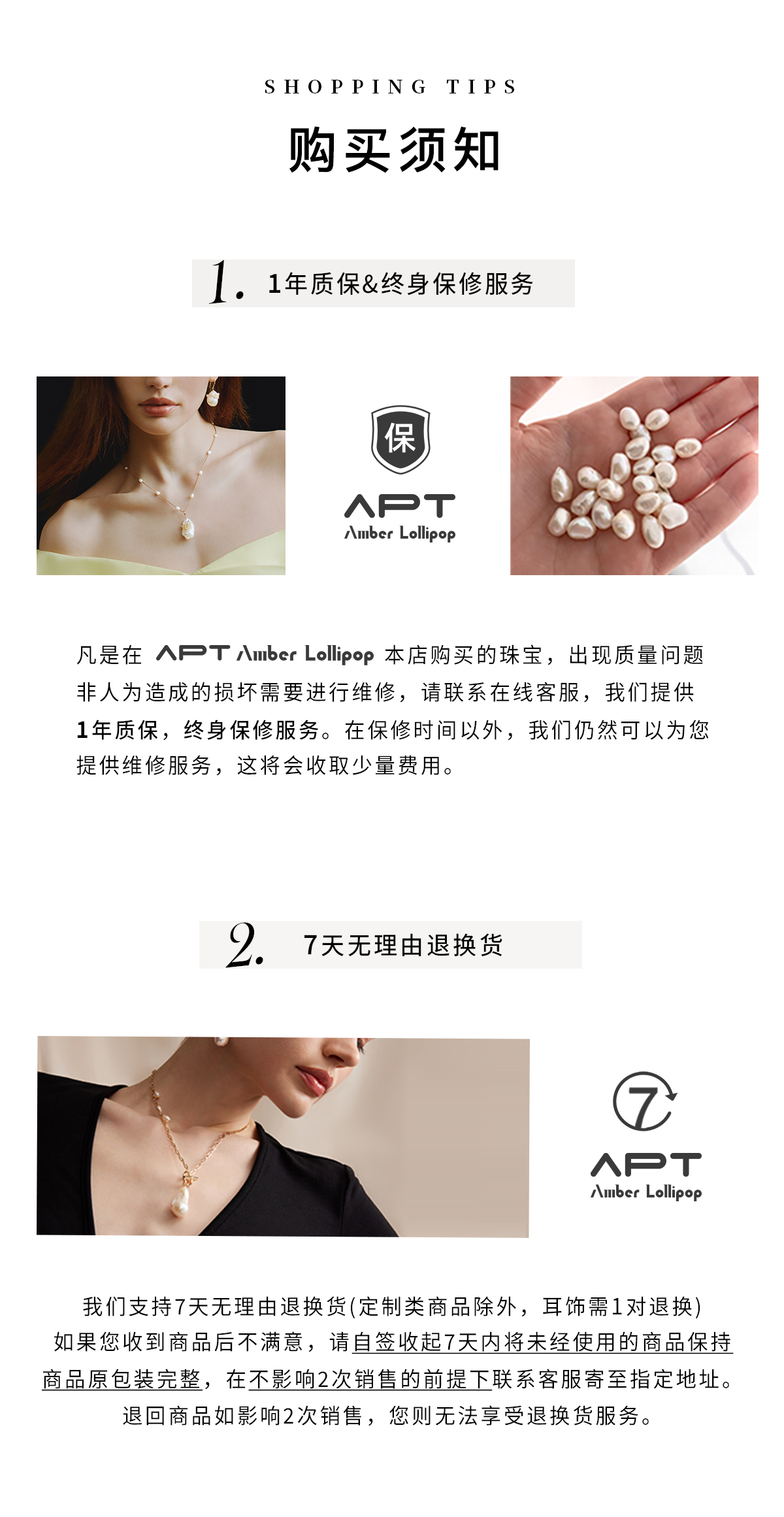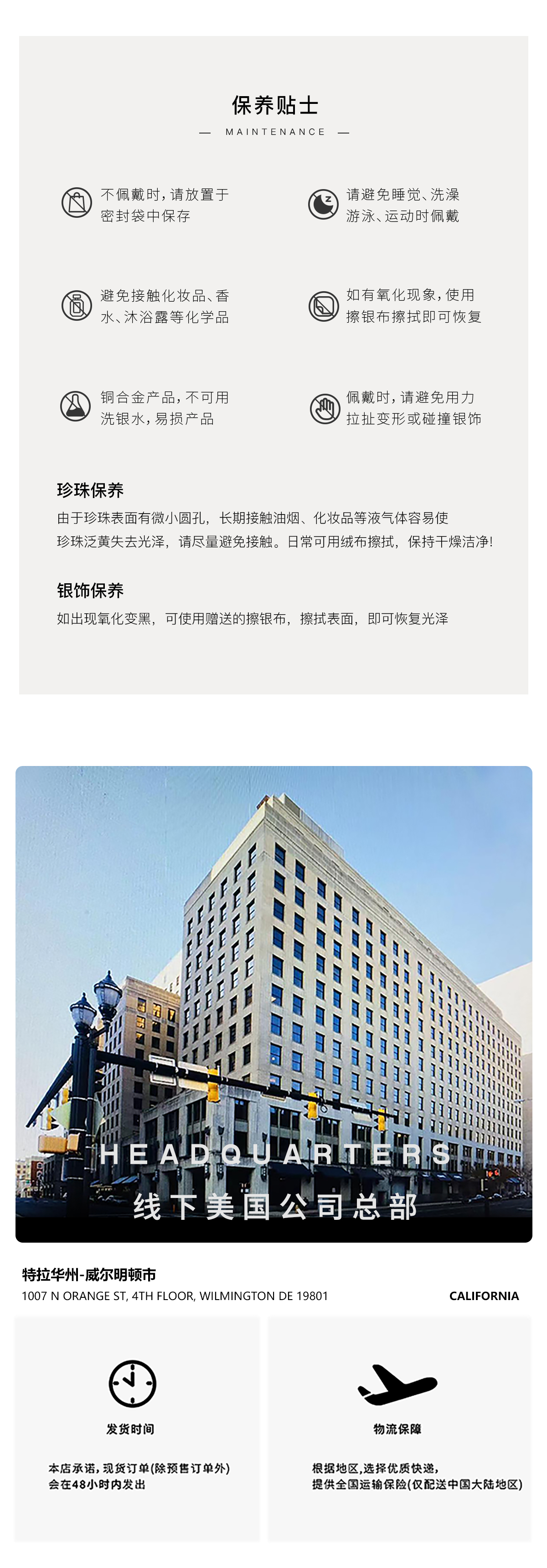 【生产日期/保质期】本品牌饰品保修时间为一年,配饰保修为一年,非商品质量问题保修期间内需承担来回运费,超出保修时间需要承担维修费用