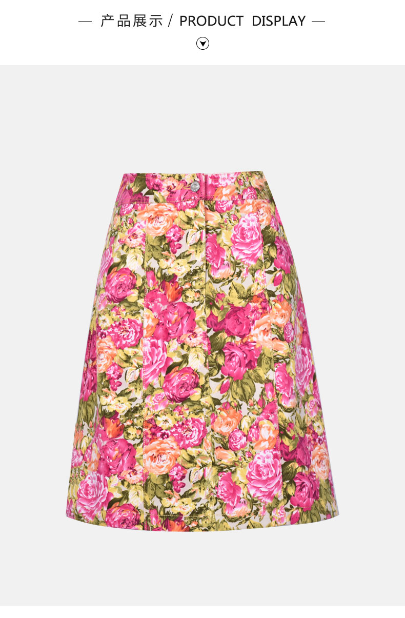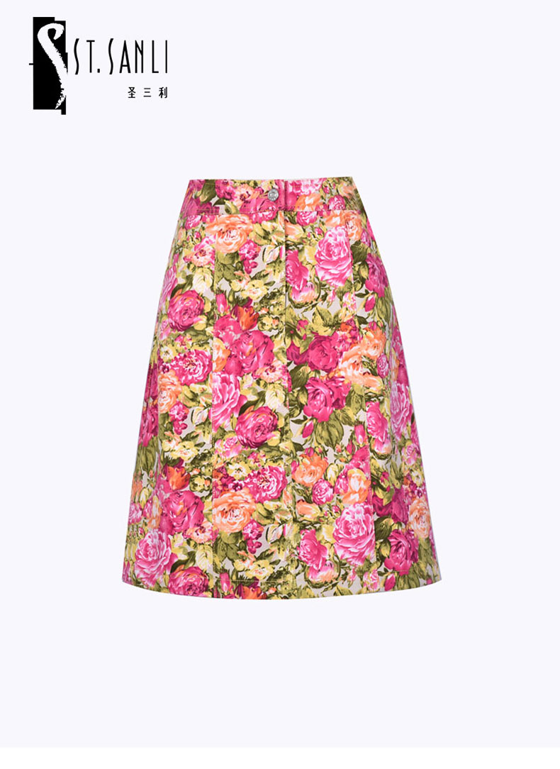 圣三利女装 时尚休闲多彩玫瑰印花半身裙SL121B12