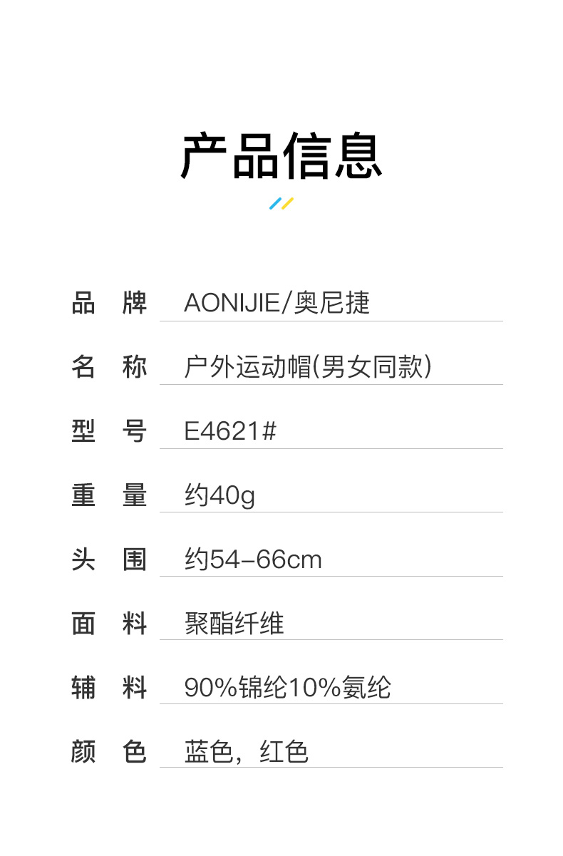 奥尼捷户外运动鸭舌帽网孔透气时尚拼色运动帽防晒遮阳轻量运动帽E4621