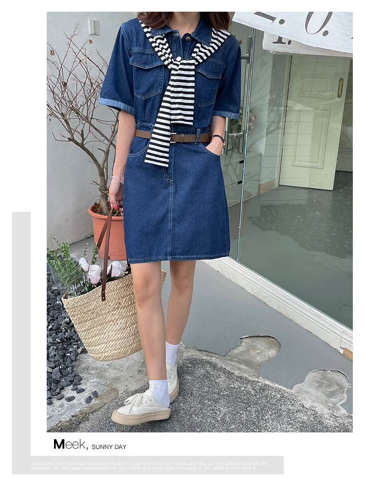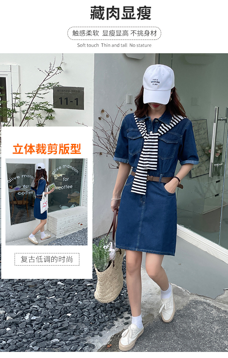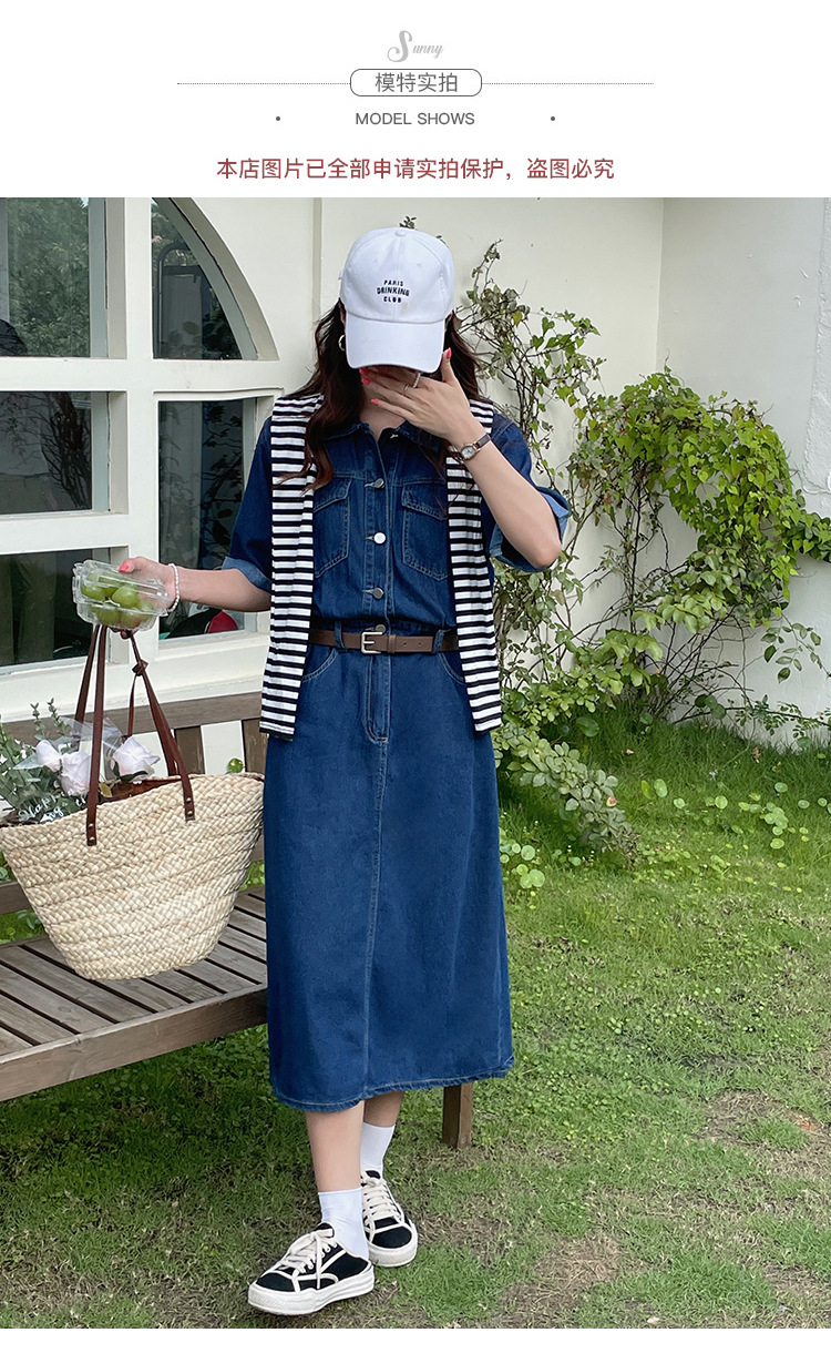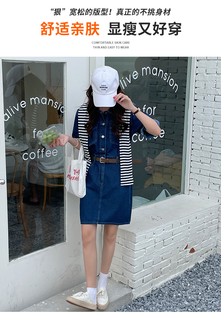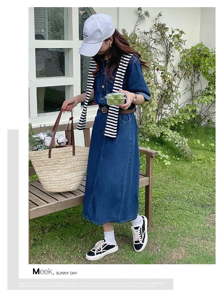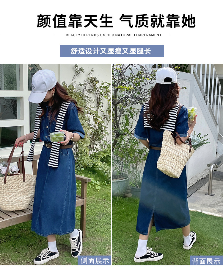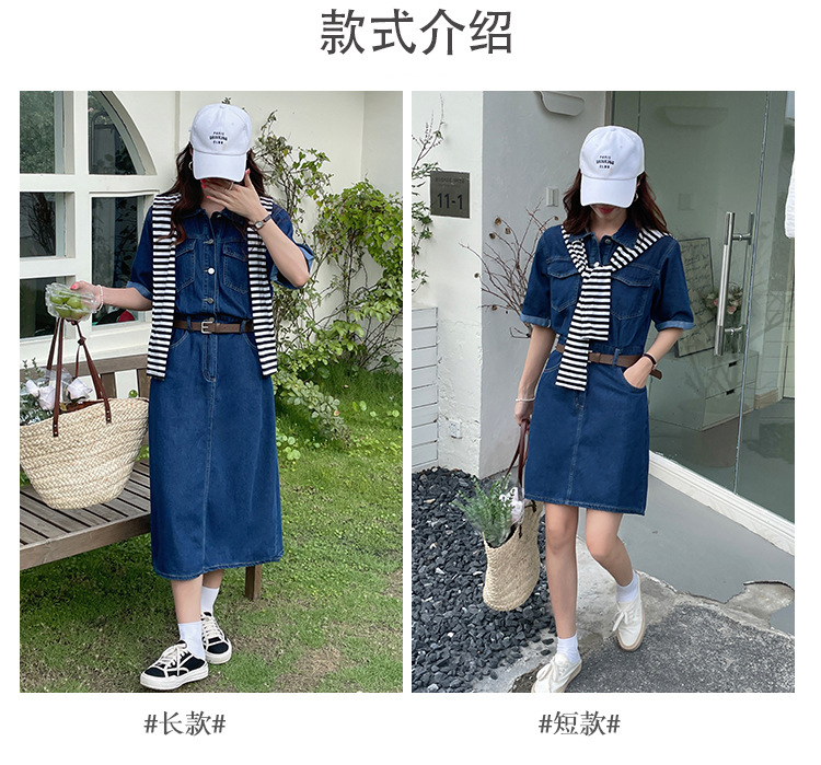 2023春季新款韩版百搭中长款短袖牛仔连衣裙