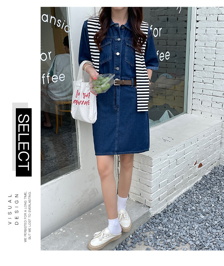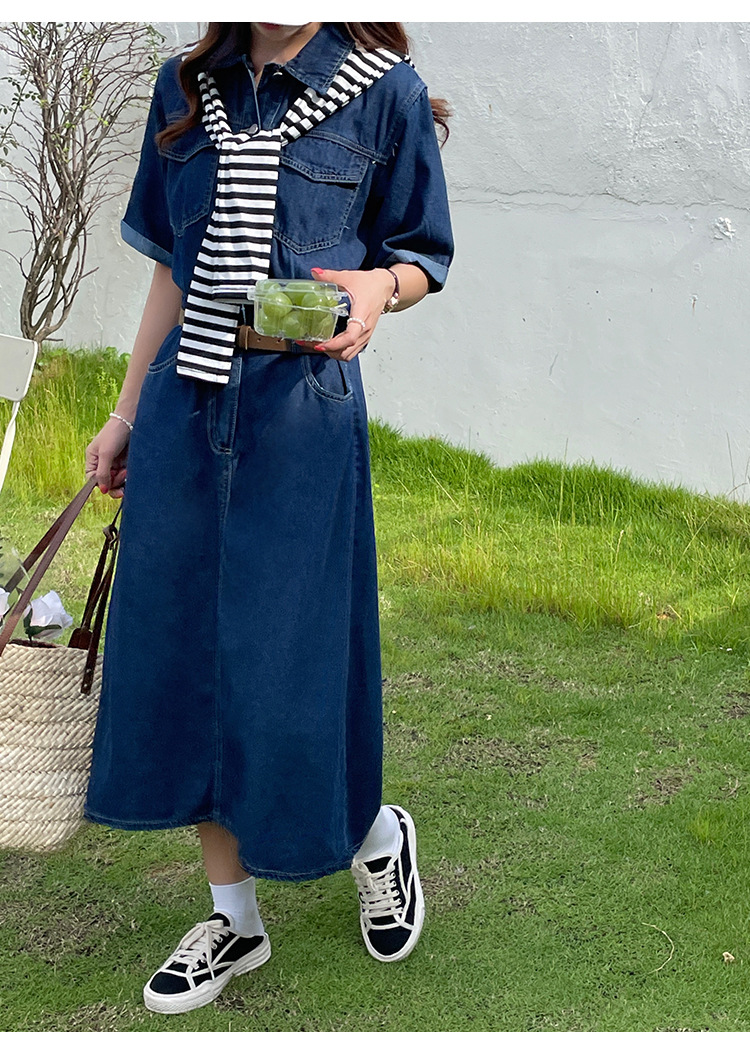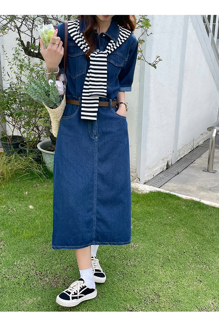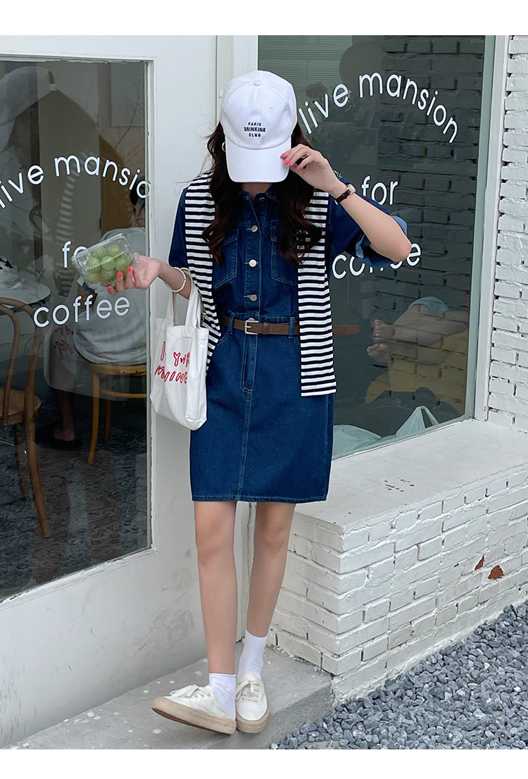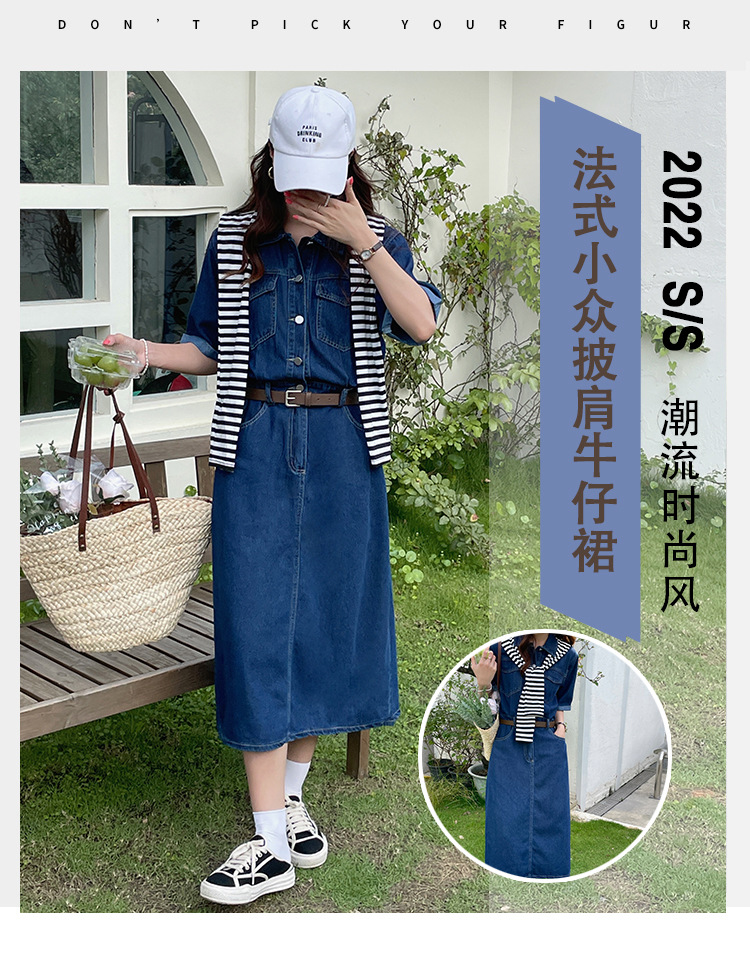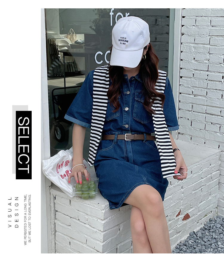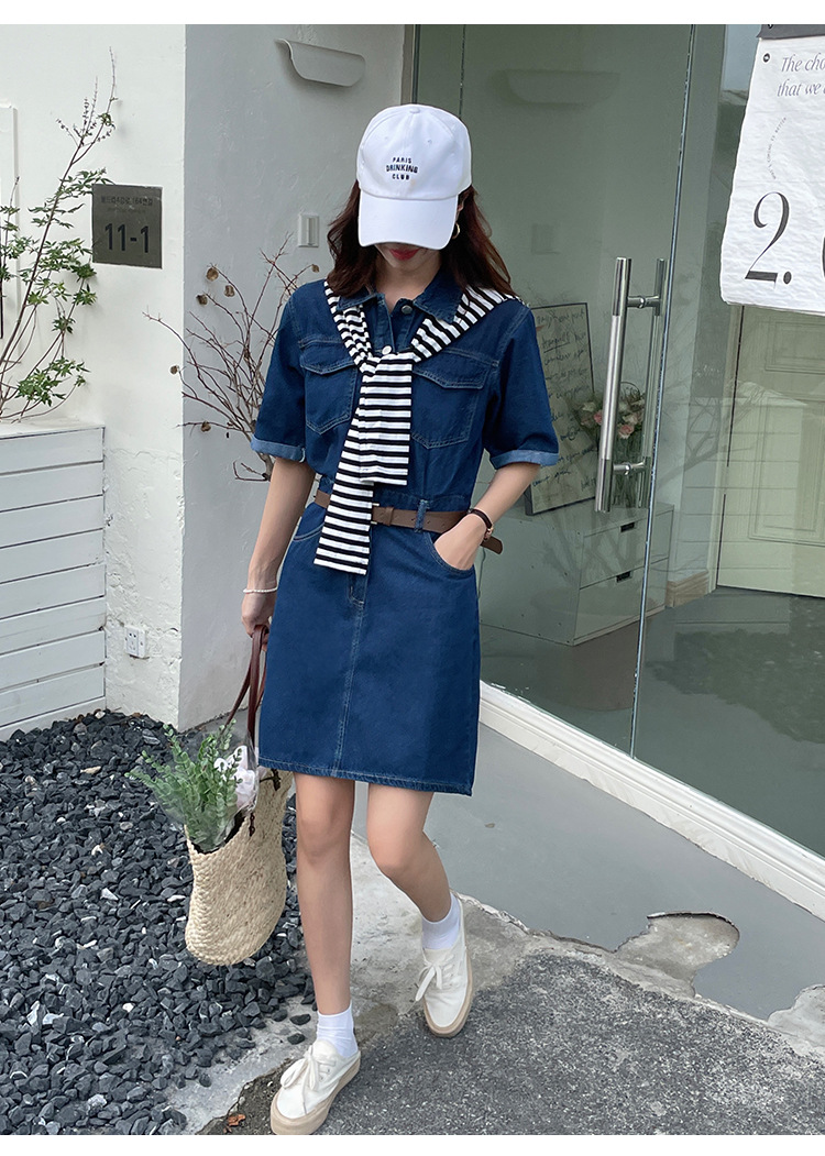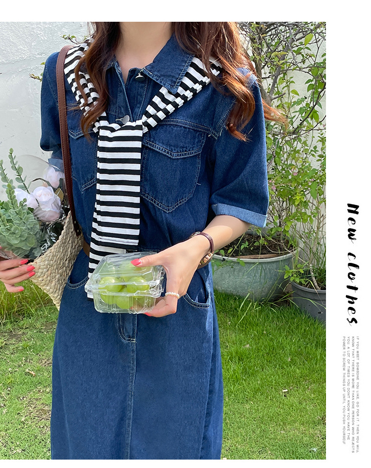 2023春季新款韩版百搭中长款短袖牛仔连衣裙