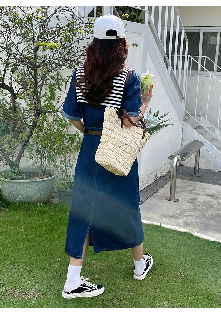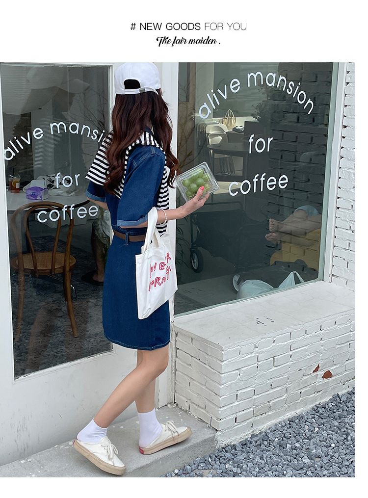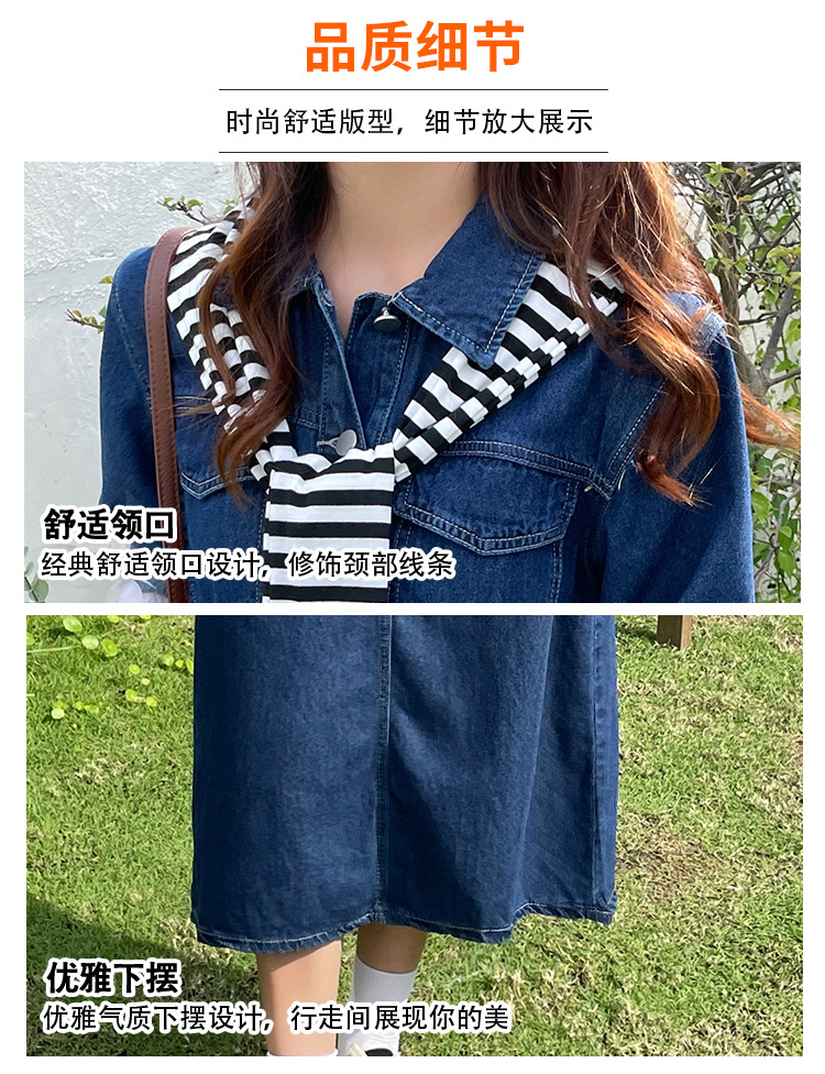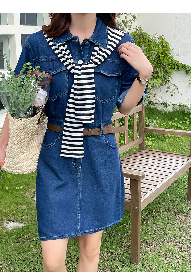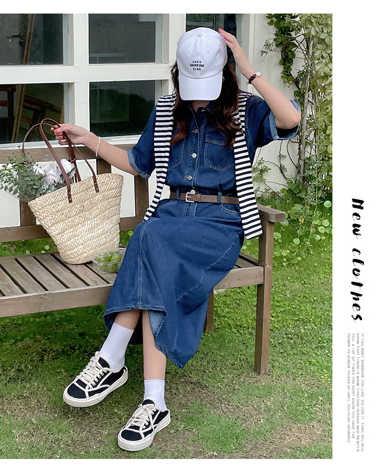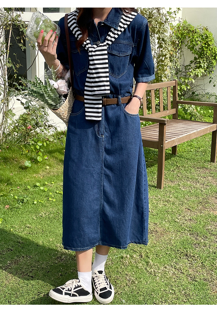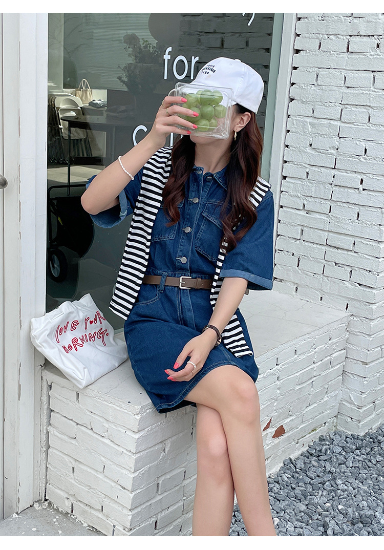 2023春季新款韩版百搭中长款短袖牛仔连衣裙