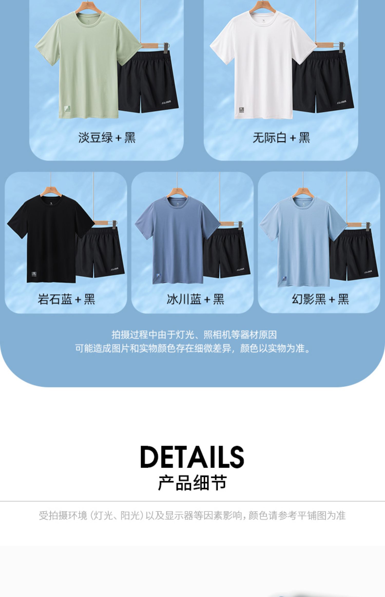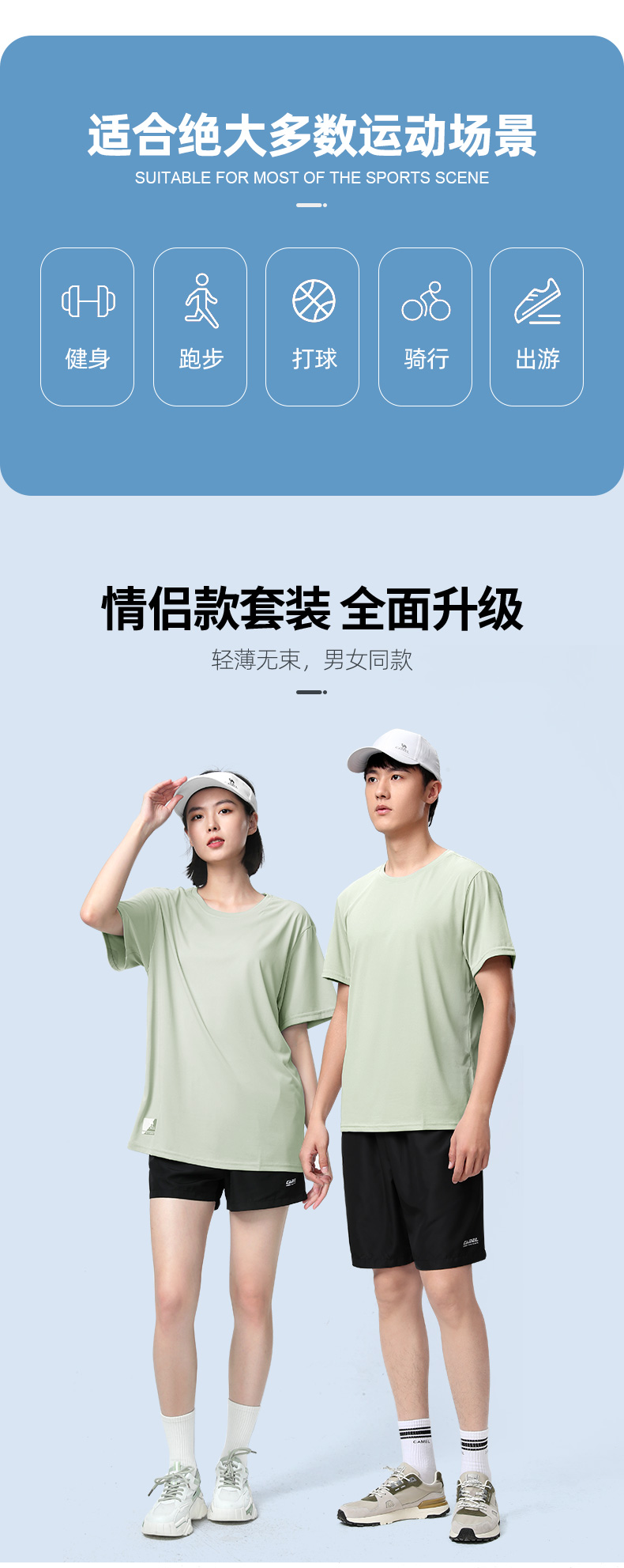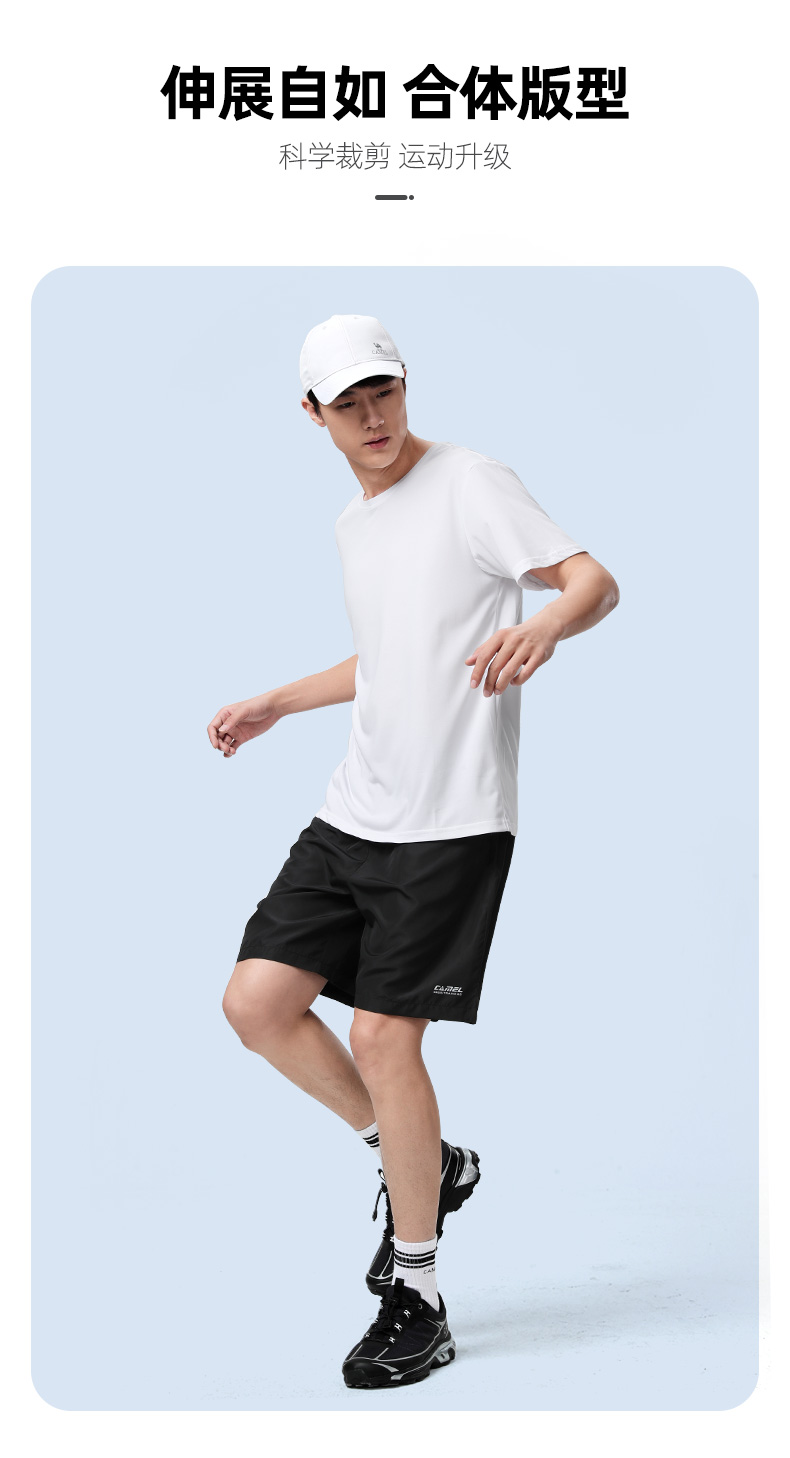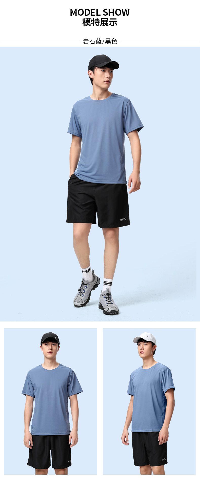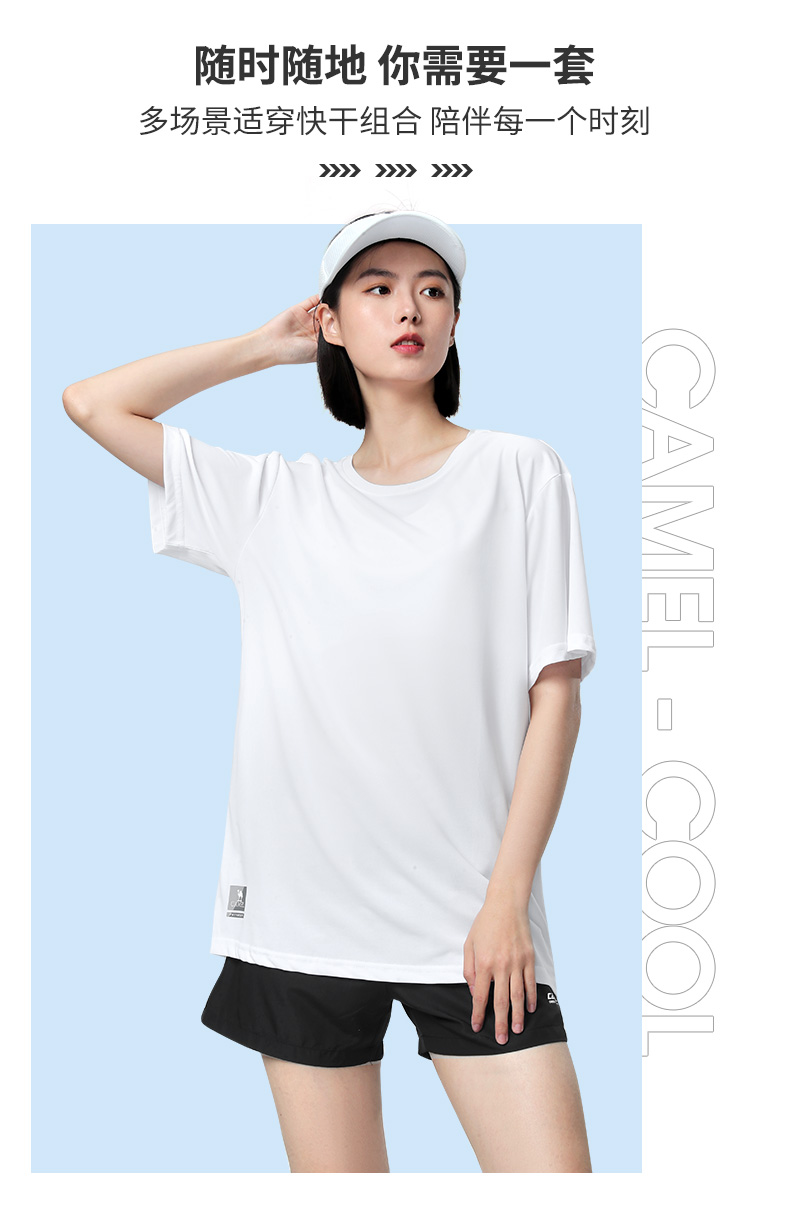 骆驼户外运动套装男女冰丝凉感速干短袖高弹跑步短裤健身服两件套 8B302142_8B302143