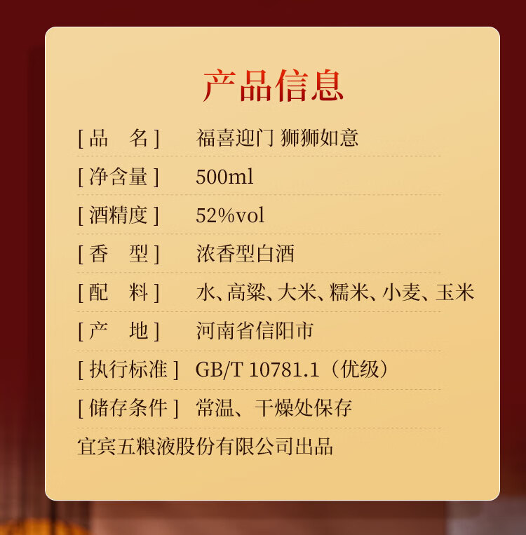 五粮液狮狮如意52度浓香型白酒500mlx2瓶