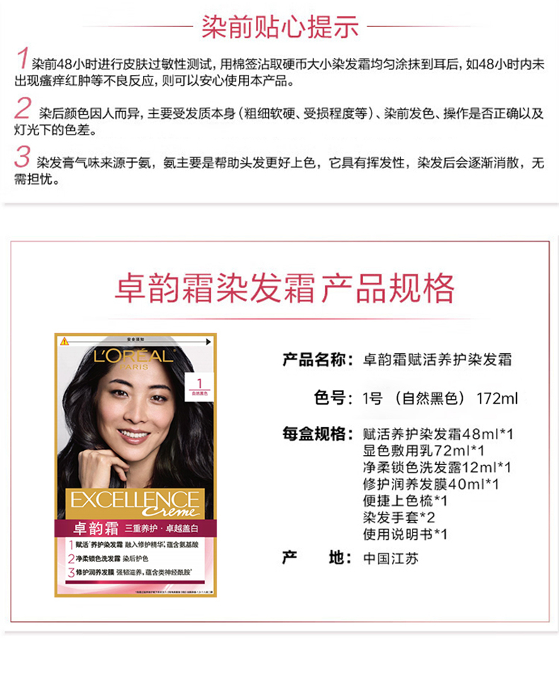 欧莱雅卓韵霜赋活养护染发霜(自然黑色) 1号 172ml