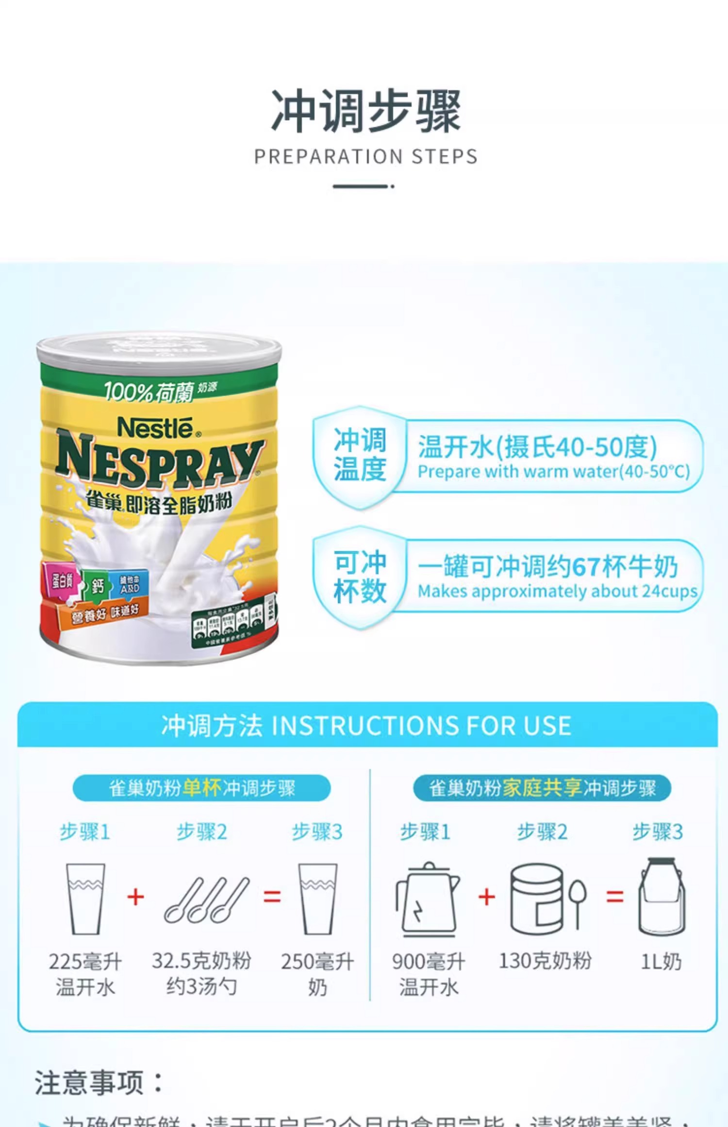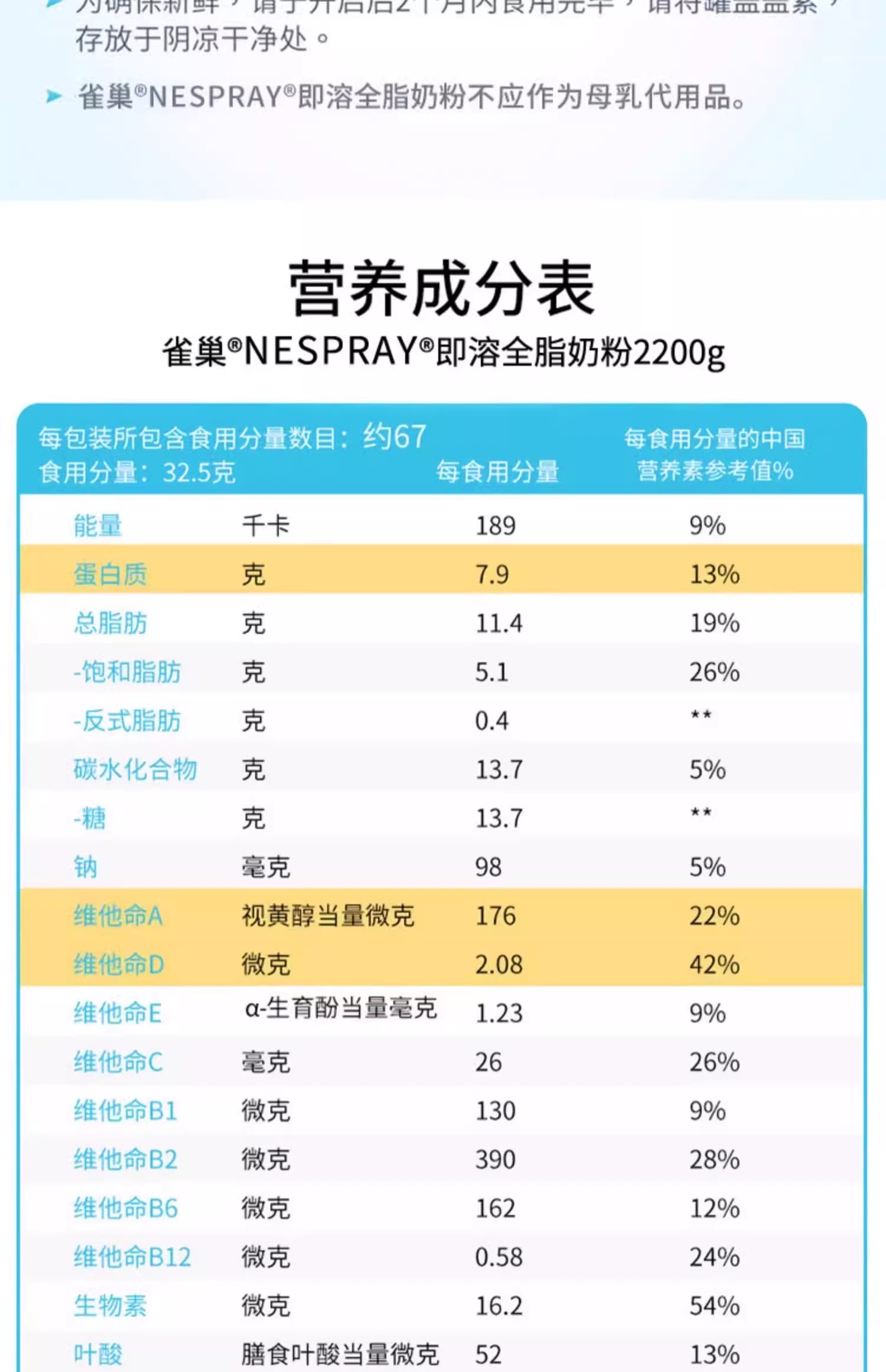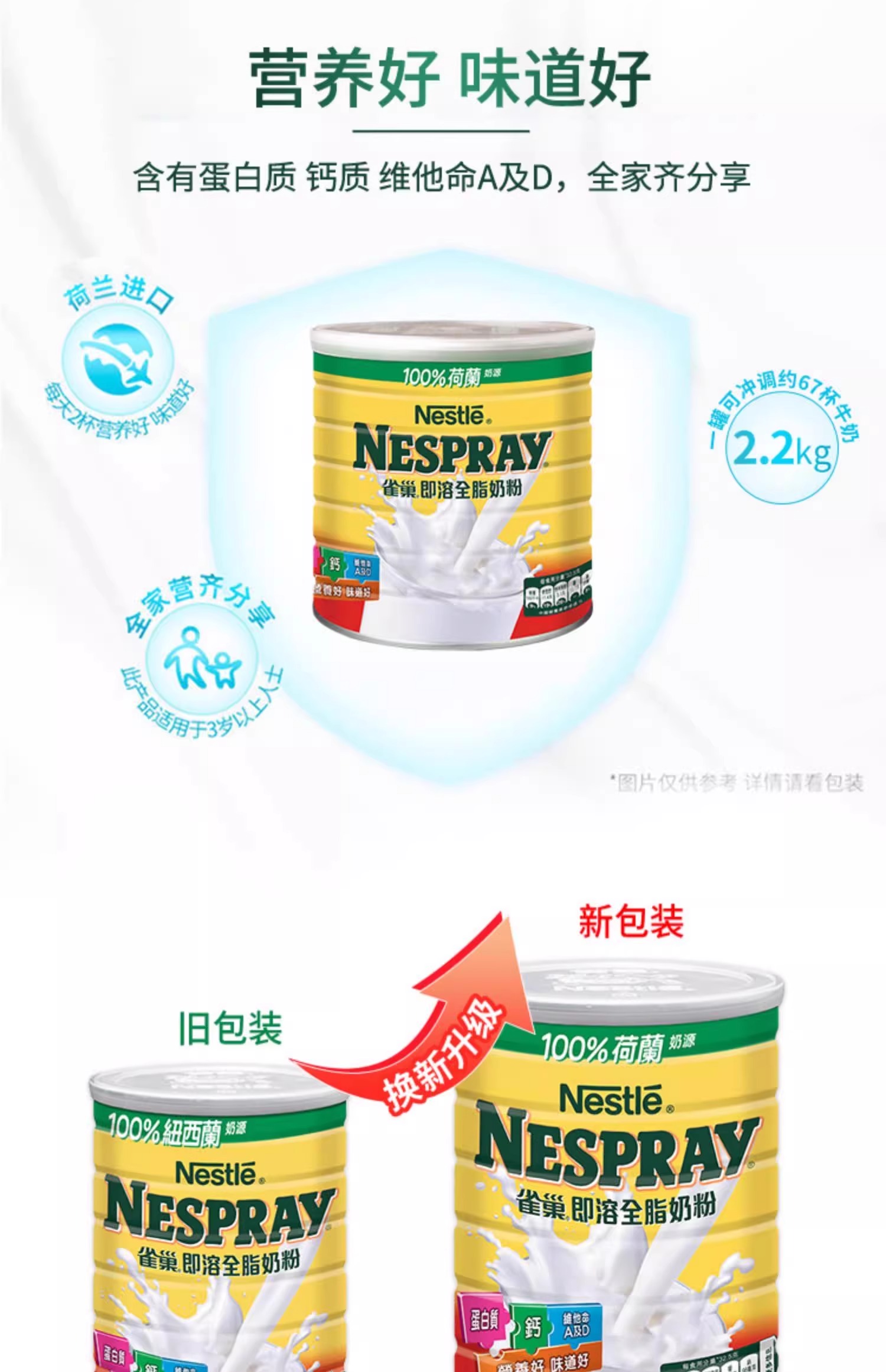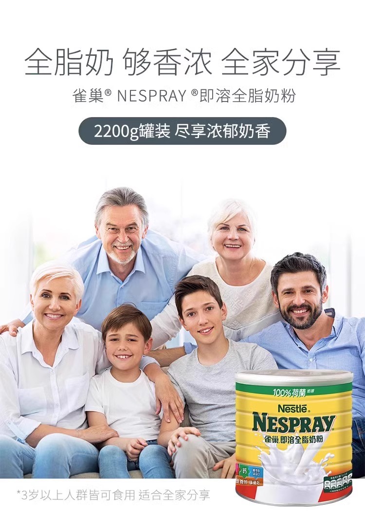 雀巢Nestle 即溶全脂成人营养奶粉 2.2kg