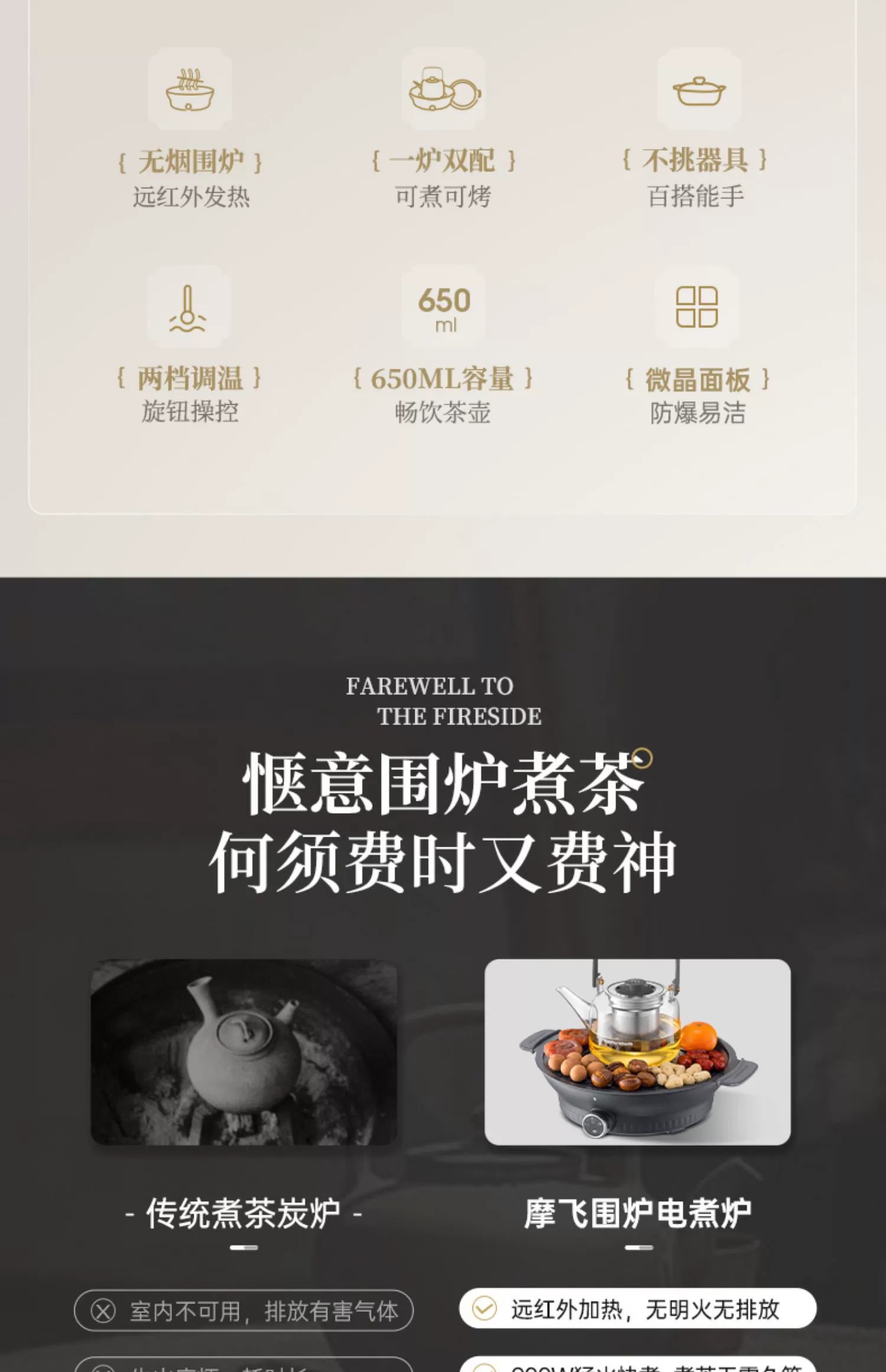 【清仓特惠4.5折,仅2件,无货退款】MR6083摩飞-围炉煮茶烤火炉套装家用电陶炉电烤炉煮茶壶煮茶器具全套冬天
