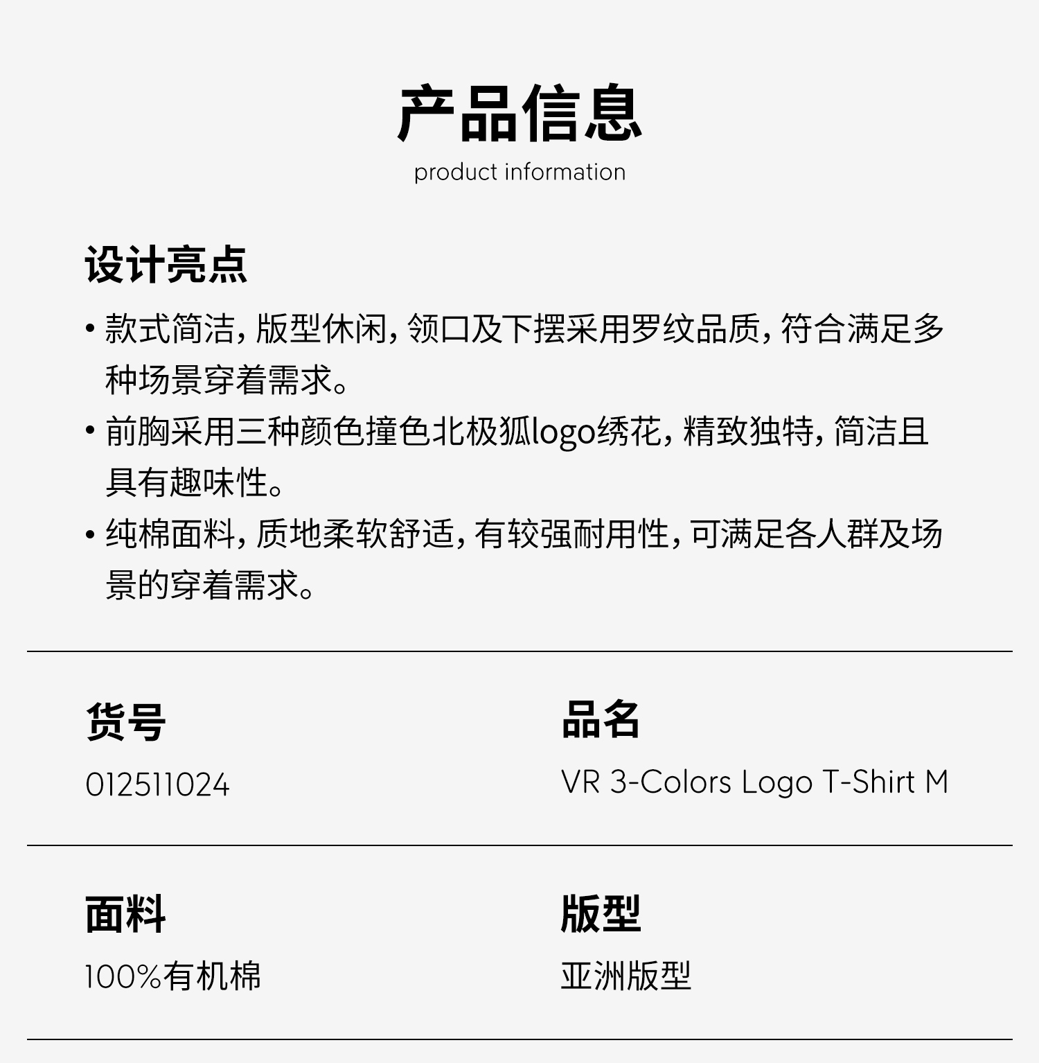 北极狐2024春夏新款男士户外舒适宽松纯棉圆领T恤短袖01241151