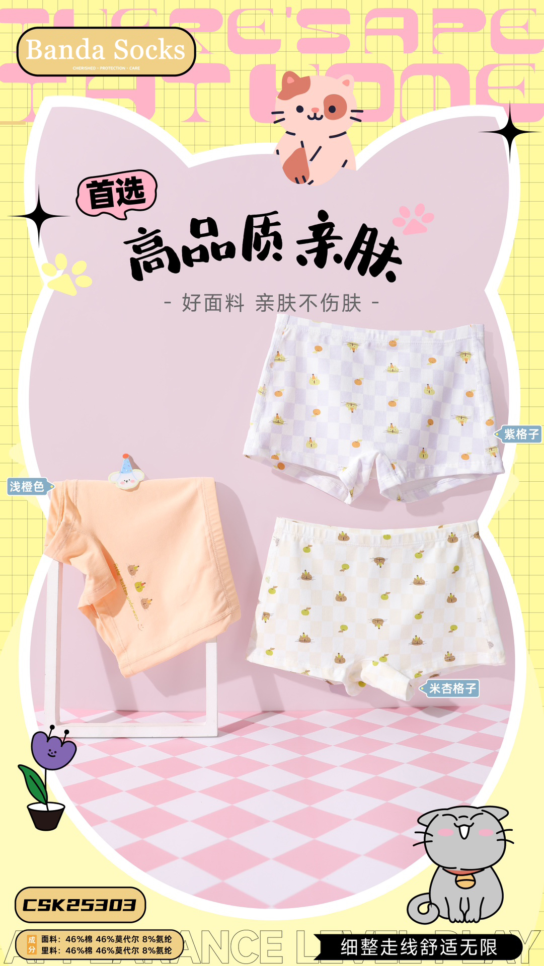 【3条装】女宝内裤小童平角棉莫内裤【CSK25303】
