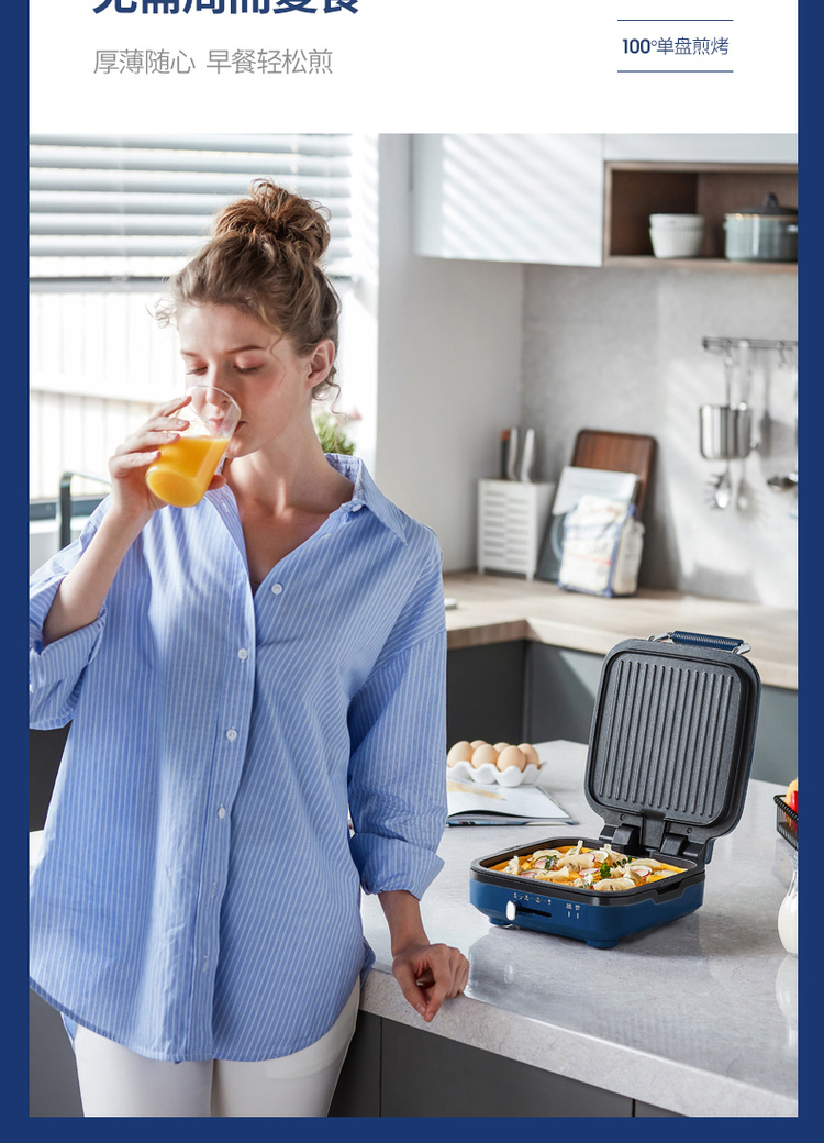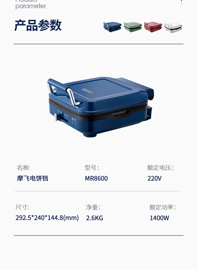 摩飞电饼铛MR8600清新绿家用双面加热薄饼机 多功能煎烤烙饼神器