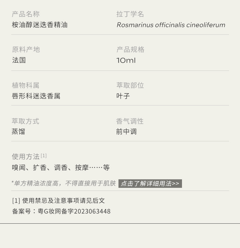 马鞭草酮迷迭香精油10ml 清透略带甜味 帮助记忆和提升专注力