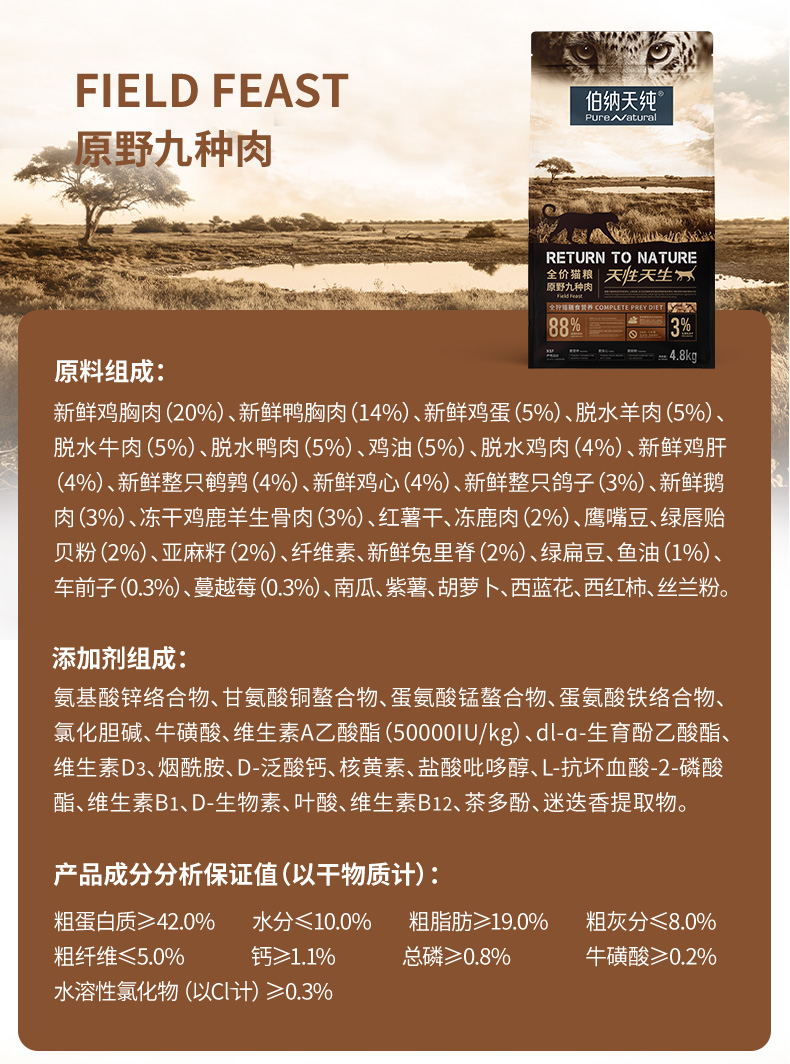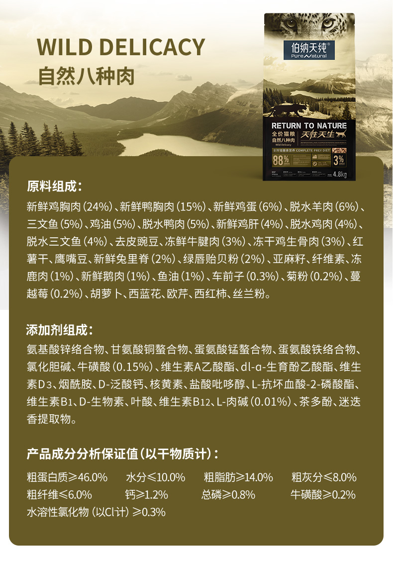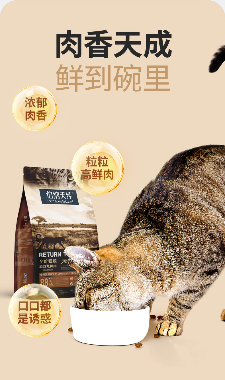 伯纳天纯原始狩猎猫粮4.8kg全猫种全猫期通用粮 美毛护泌