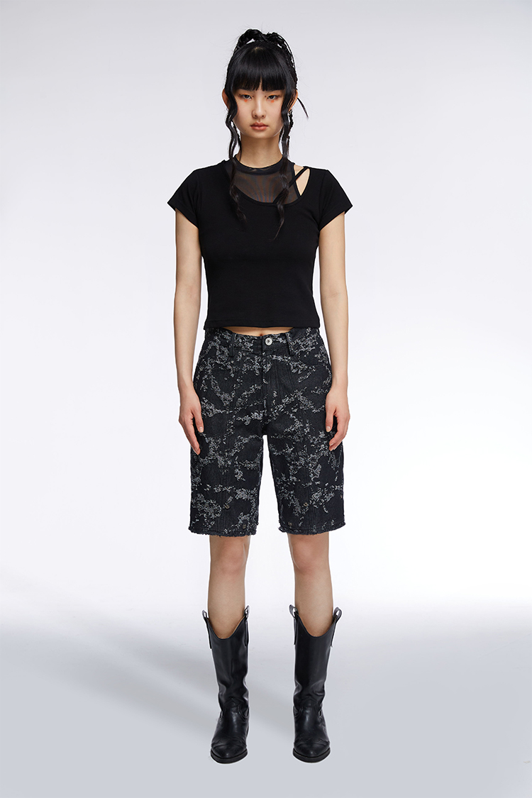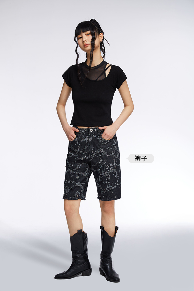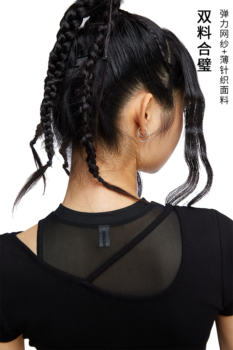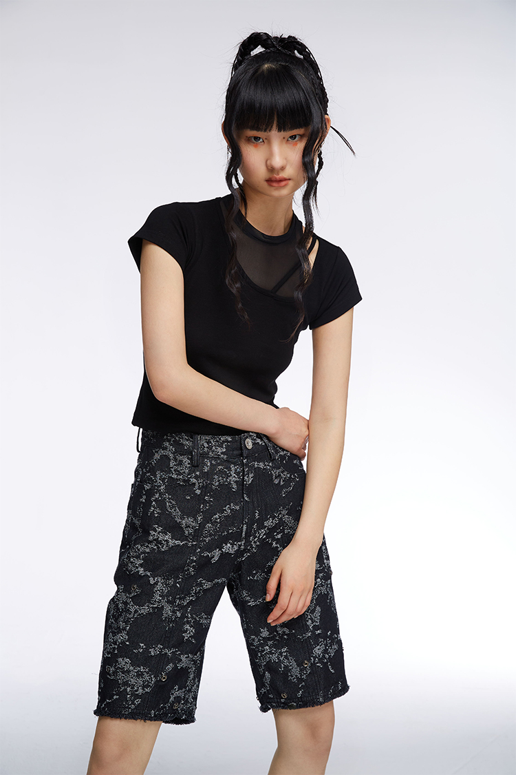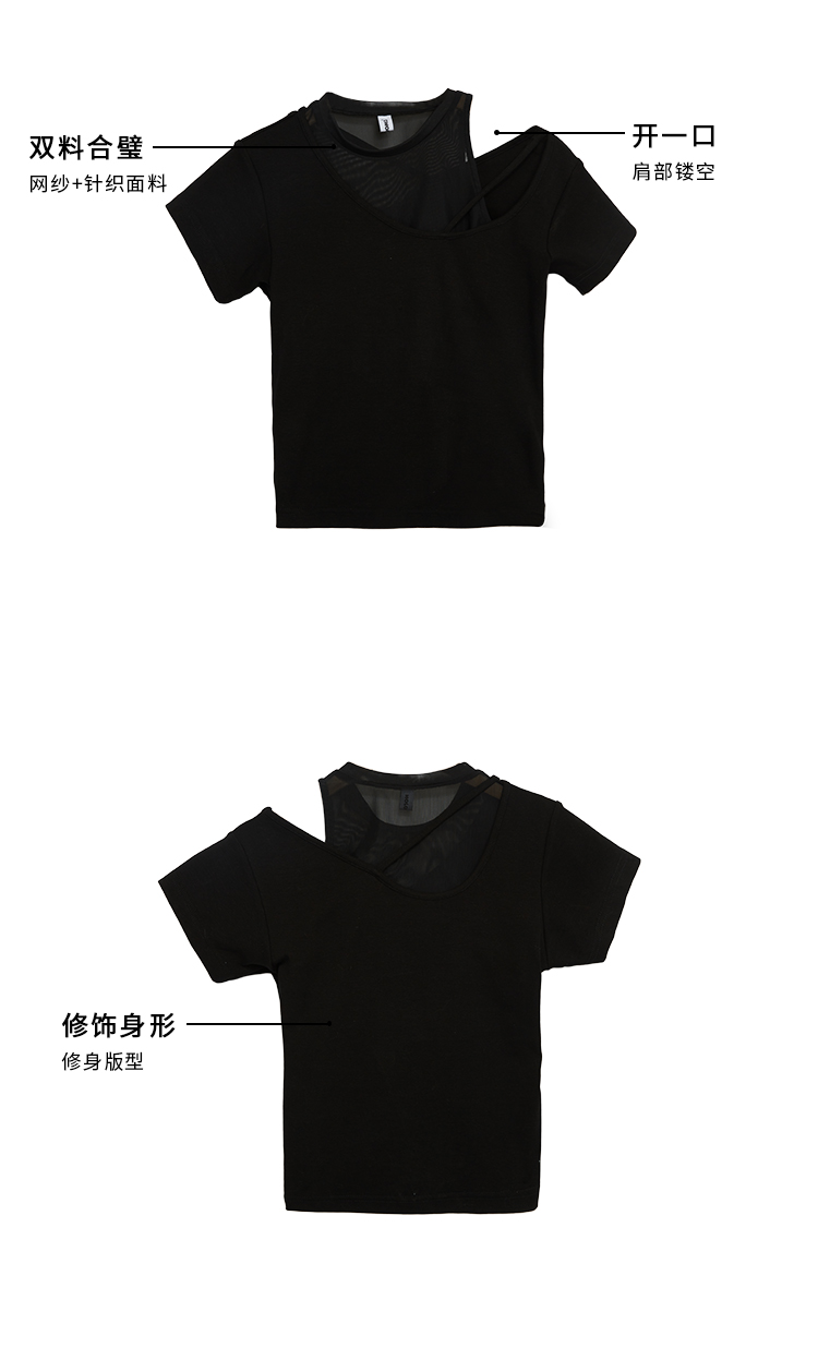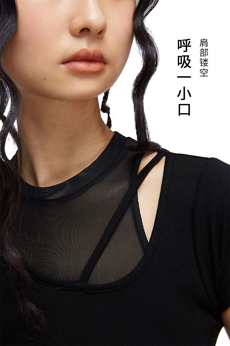 HOLONOMIC 原创网纱拼接镂空修身设计感小众短袖T恤