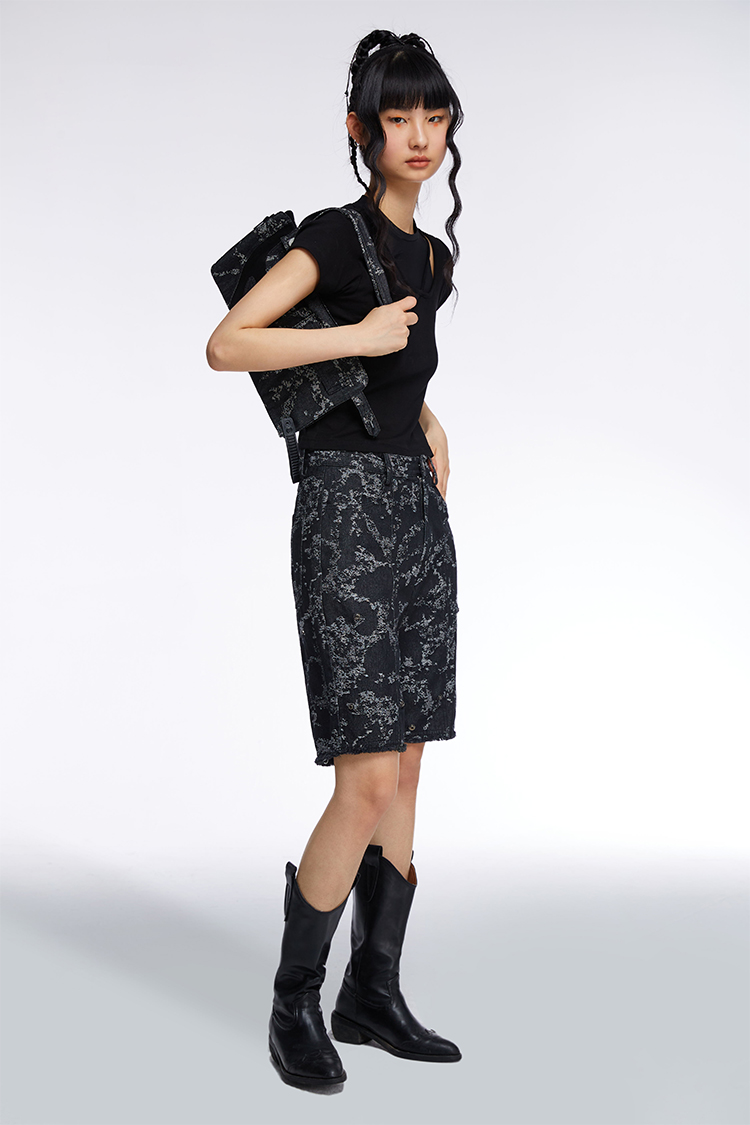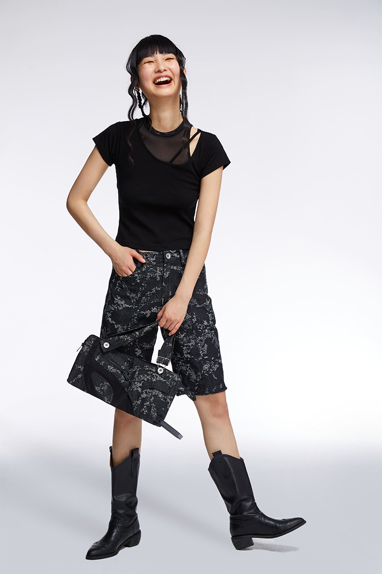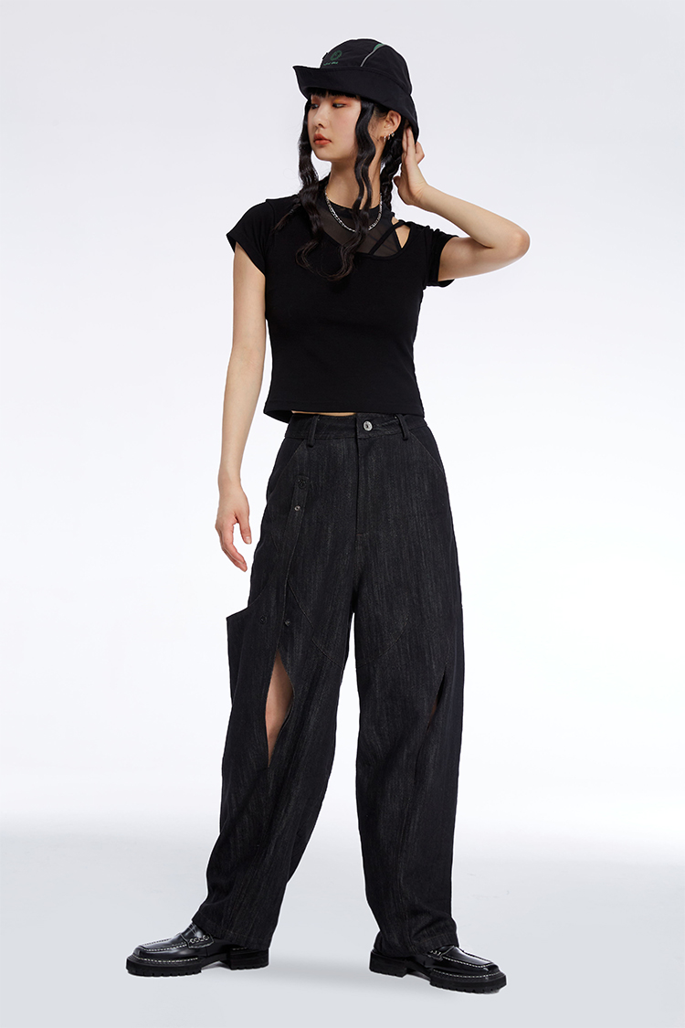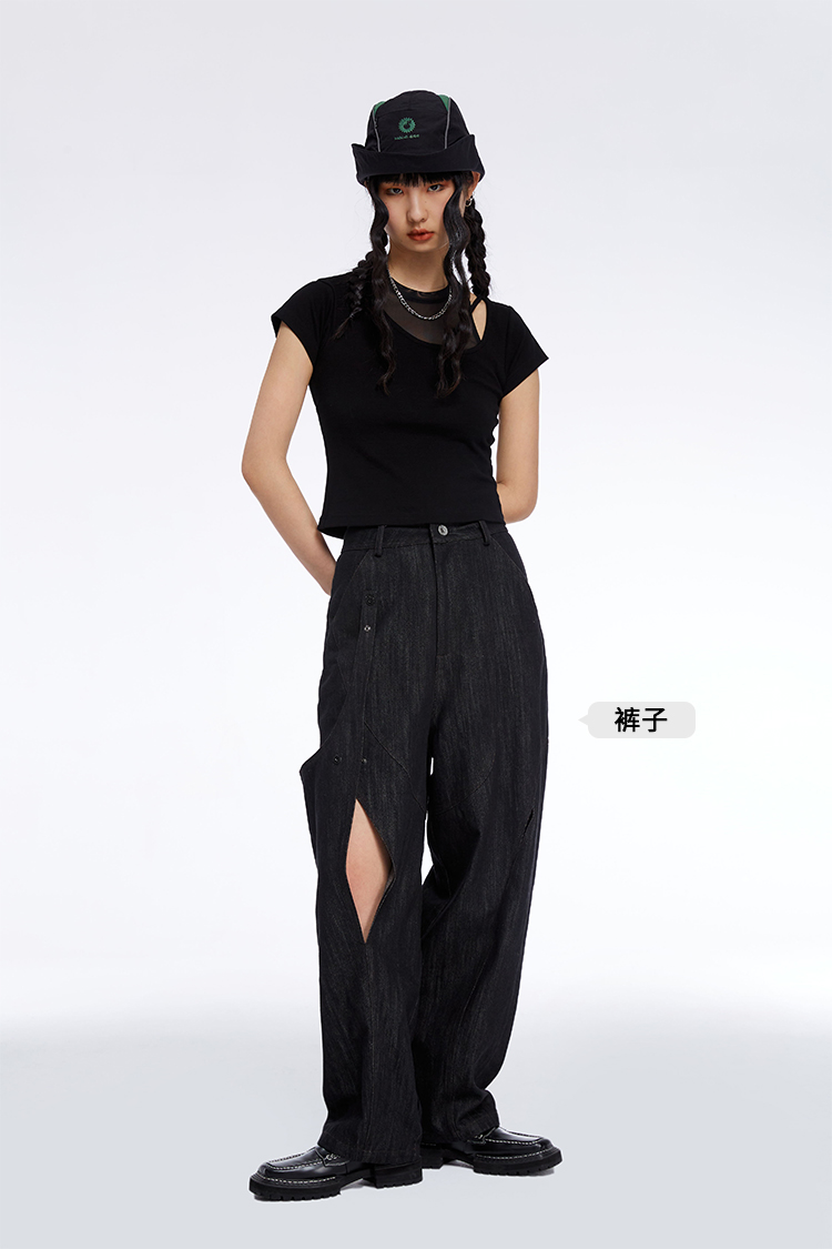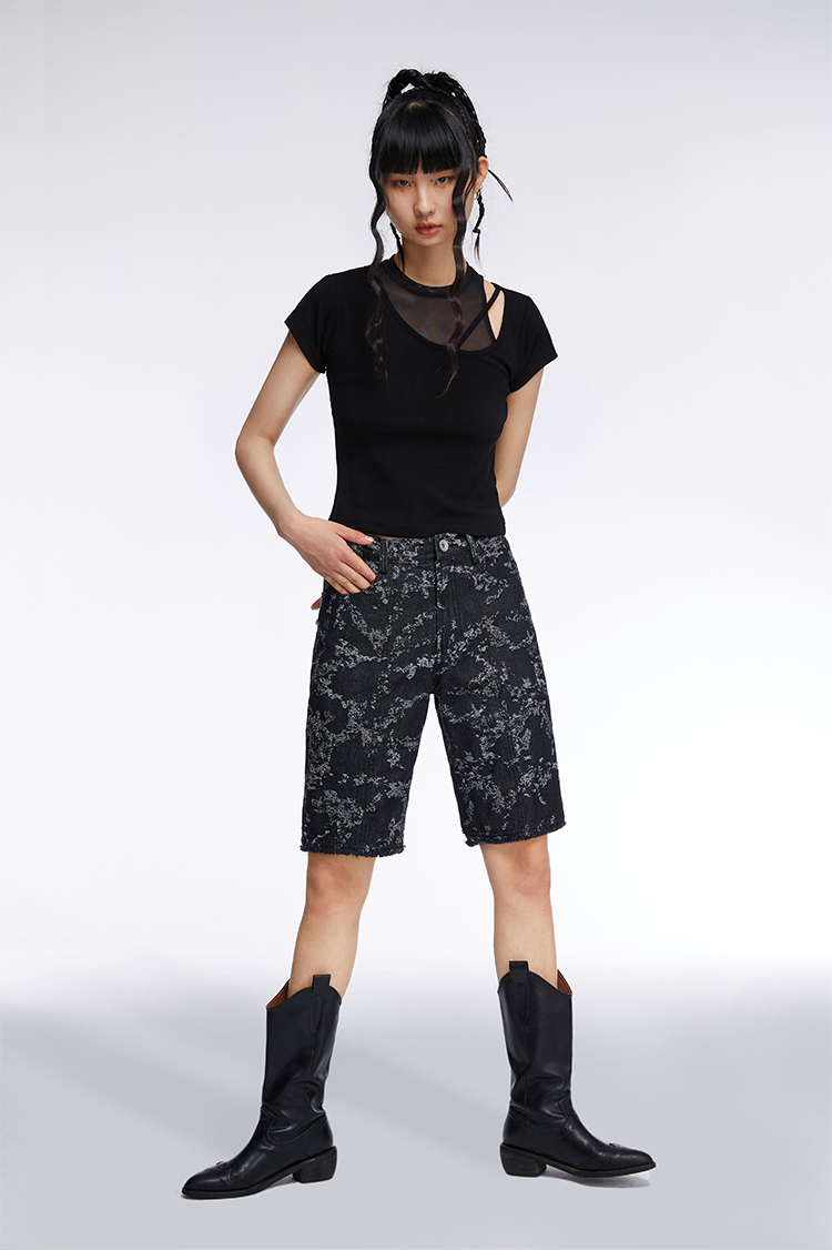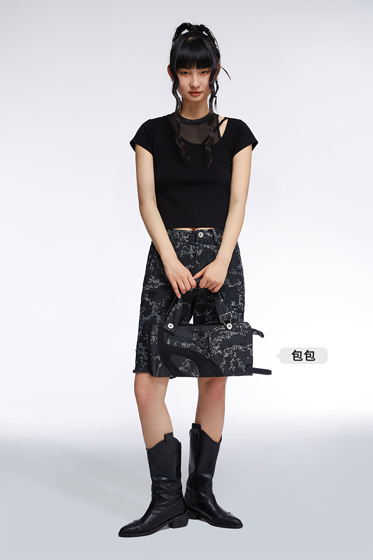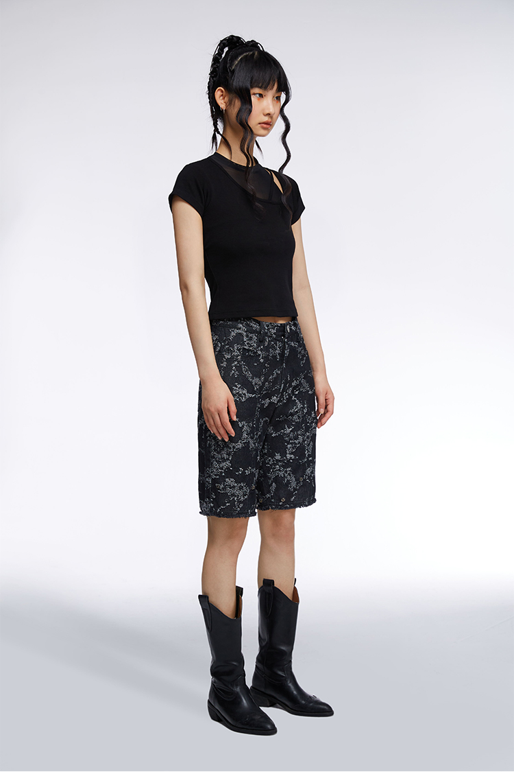 HOLONOMIC 原创网纱拼接镂空修身设计感小众短袖T恤