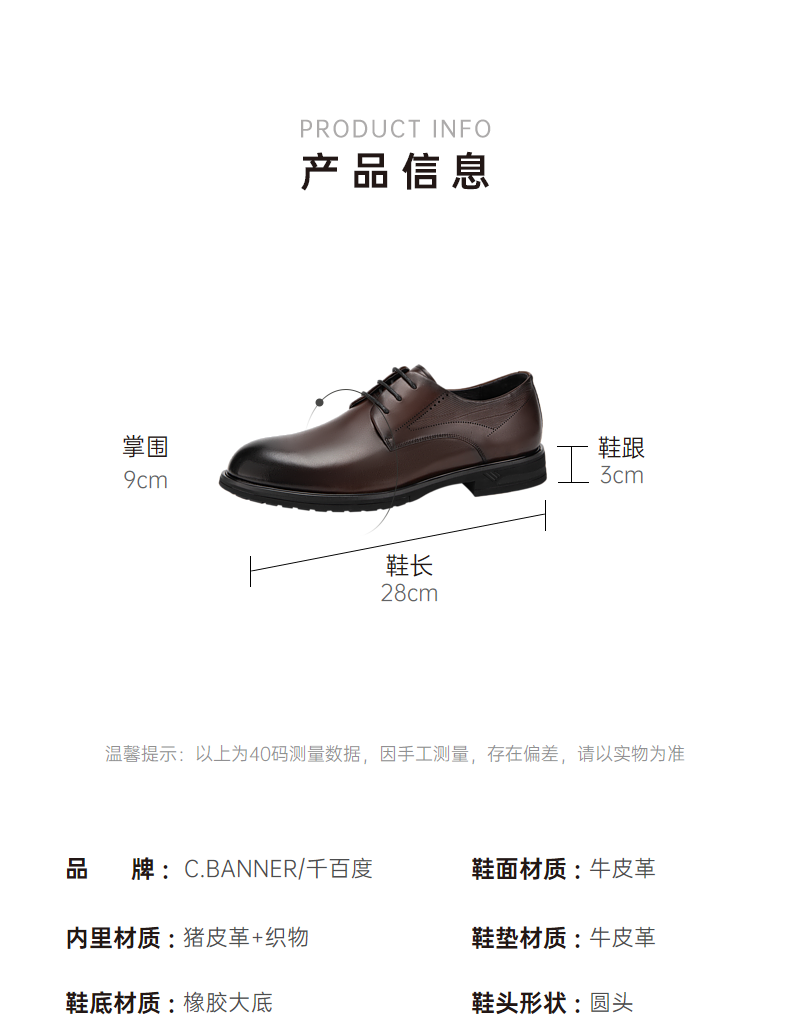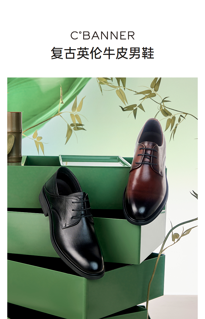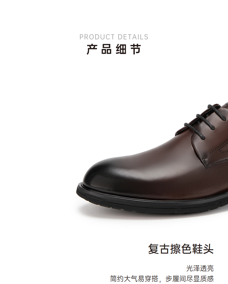 千百度男鞋英伦风正装皮鞋春夏舒适真皮男士商务大头皮鞋A24168531
