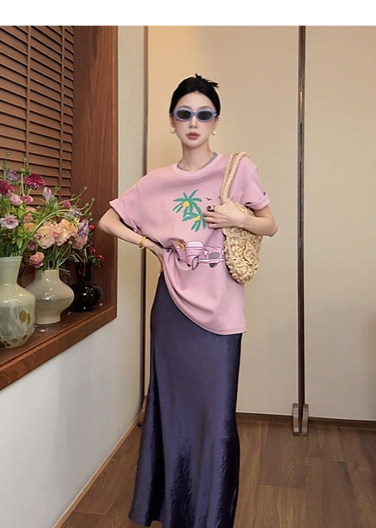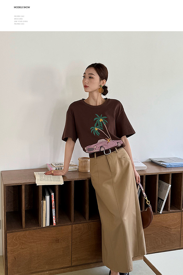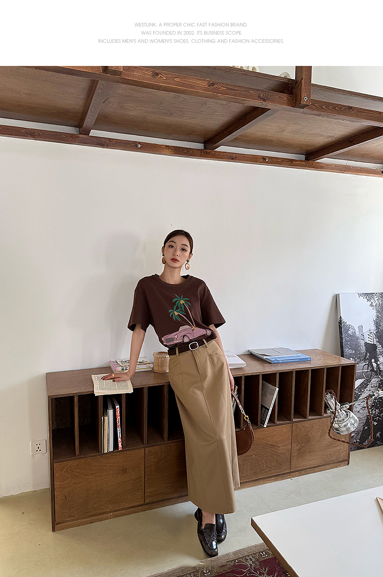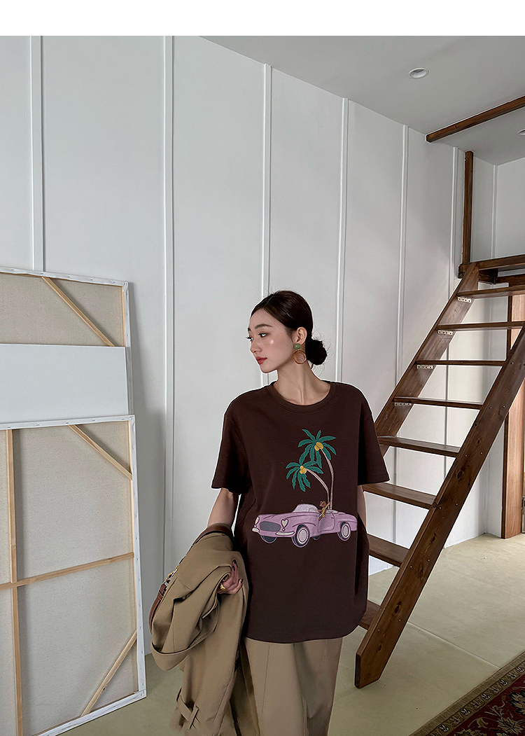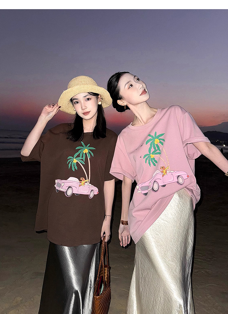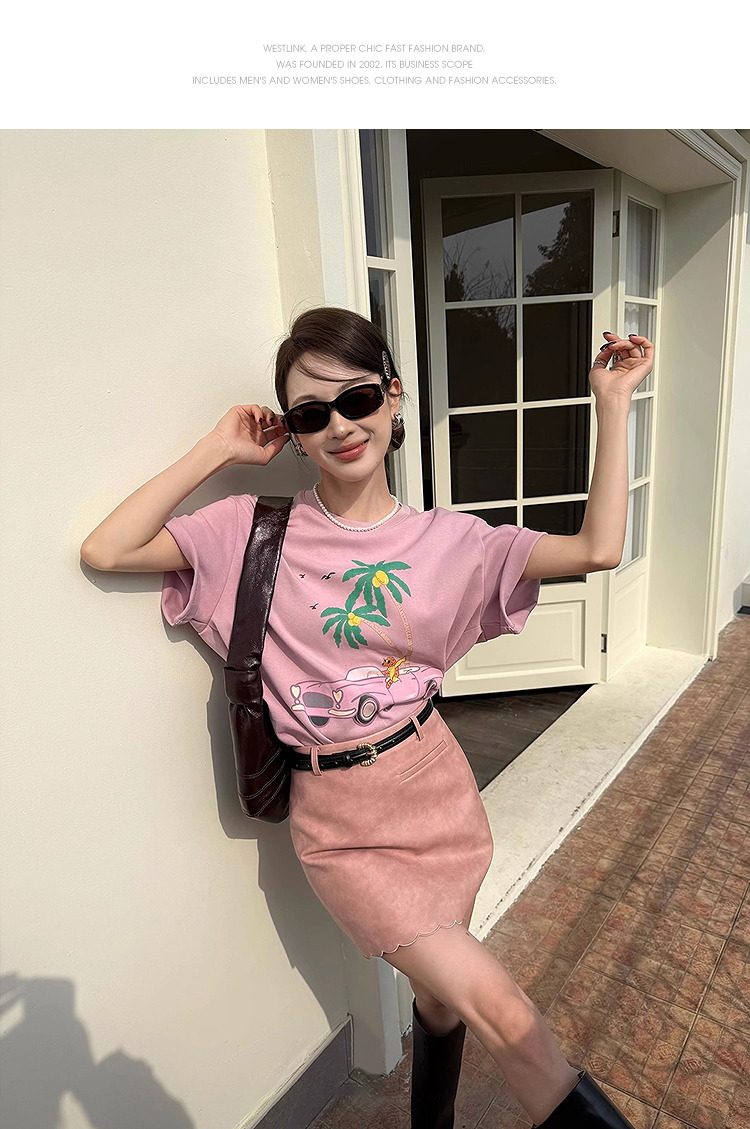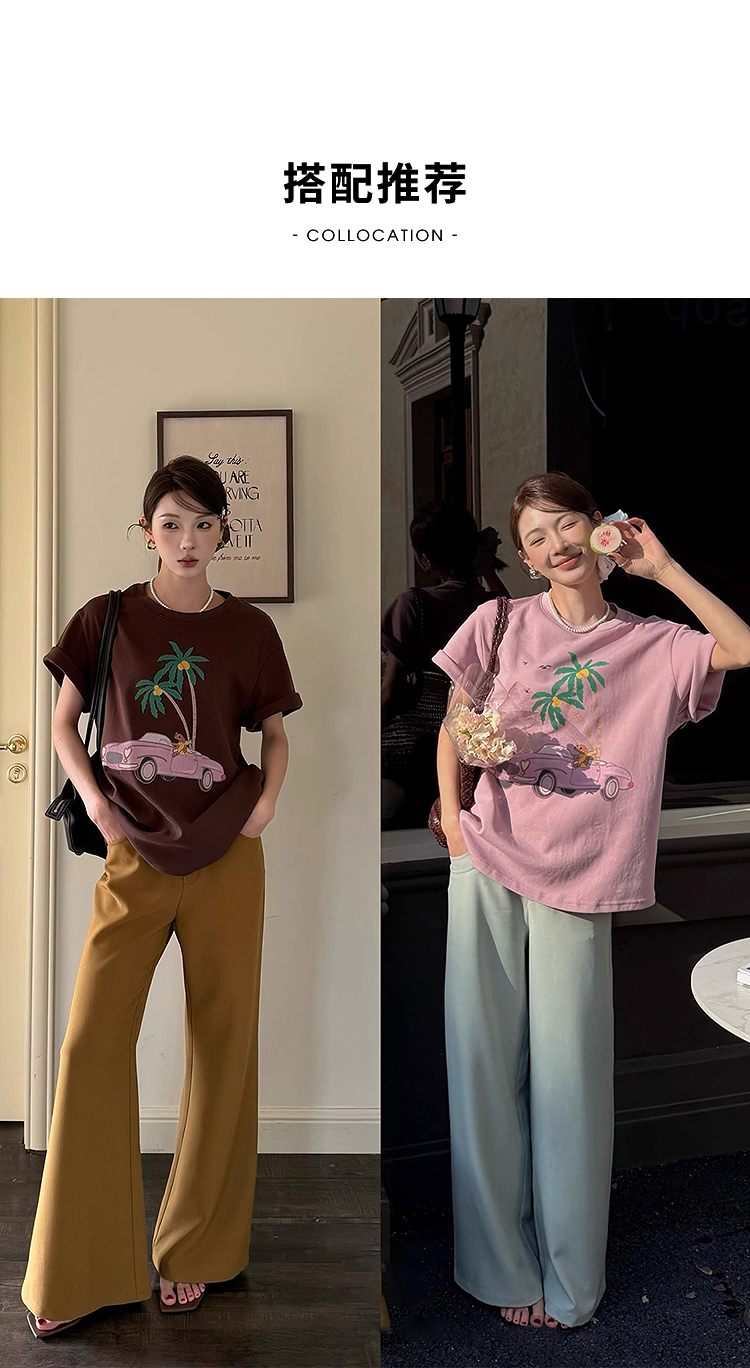 西遇圆领印花短袖T恤女2026年春季新款度假风宽松套头半袖上衣SS060163