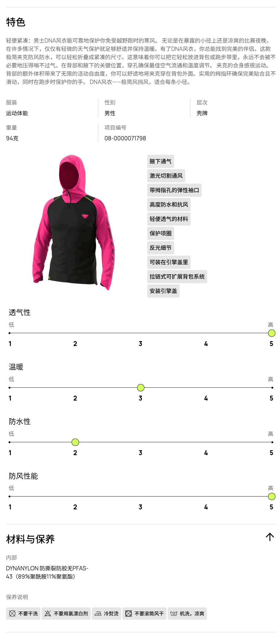 DYNAFIT 雪豹 DNA WIND M JKT 男款 防风夹克