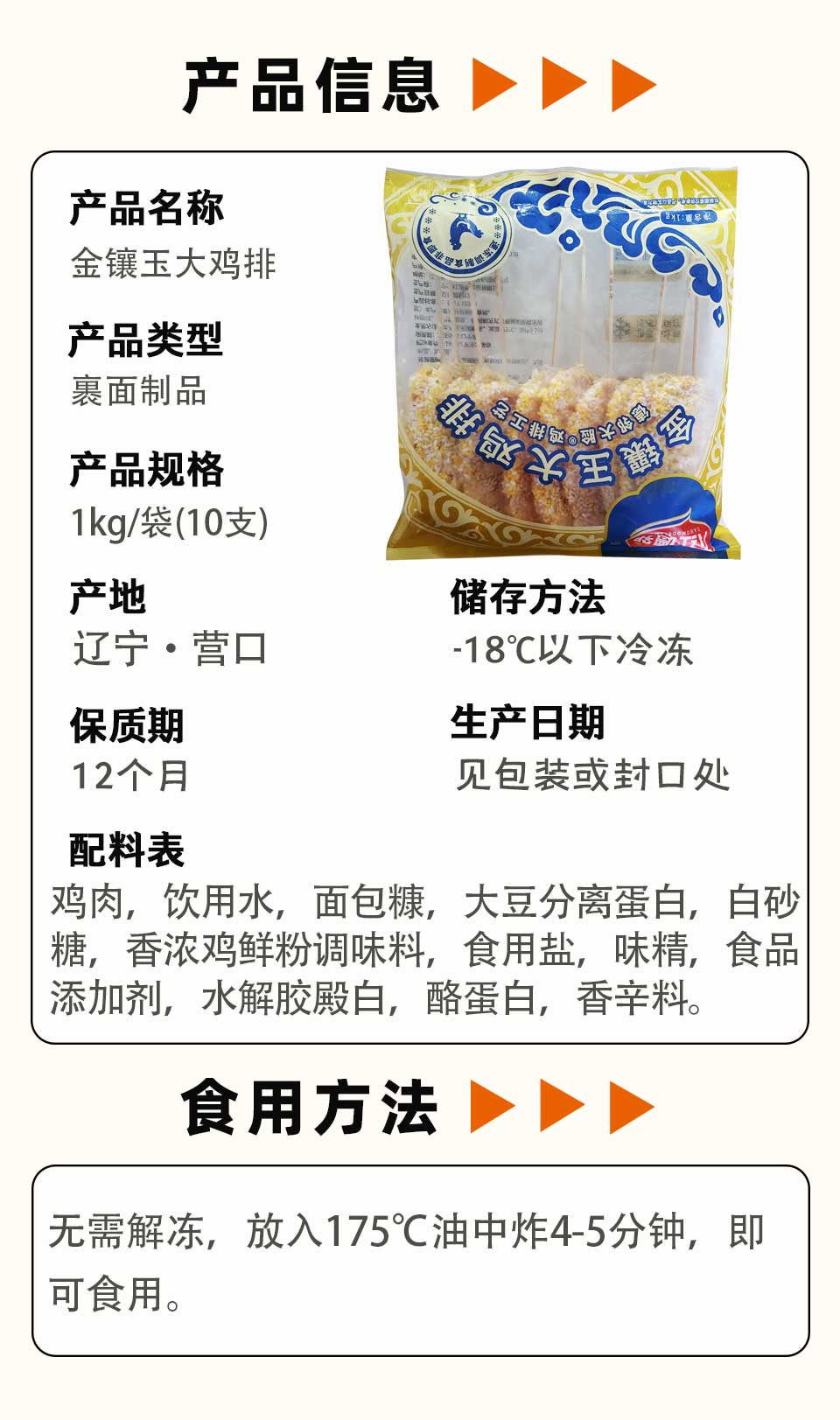 大红德邻金镶玉大鸡排 1kg/袋(10支) 10袋/件
