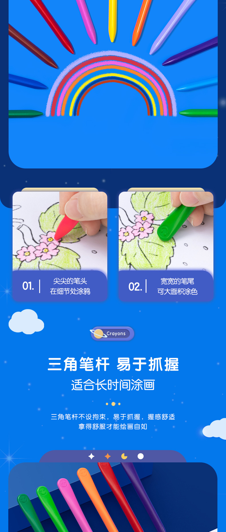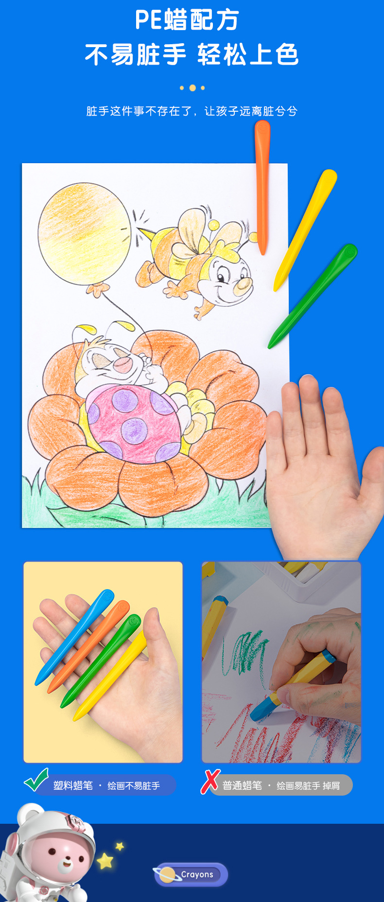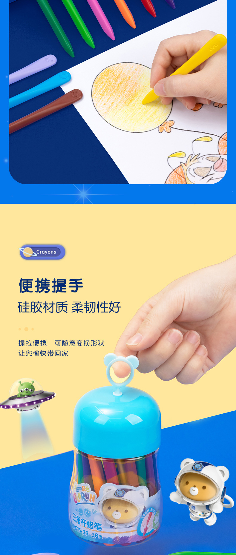 得力欧盟认证HM715塑料蜡笔 不脏手儿童安全无毒不沾手画笔 幼儿园宝宝彩笔
