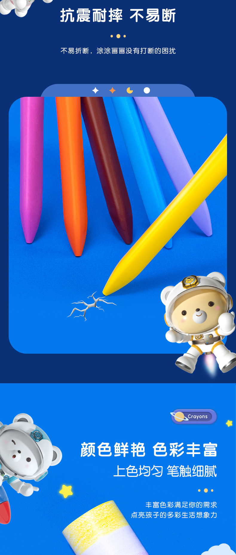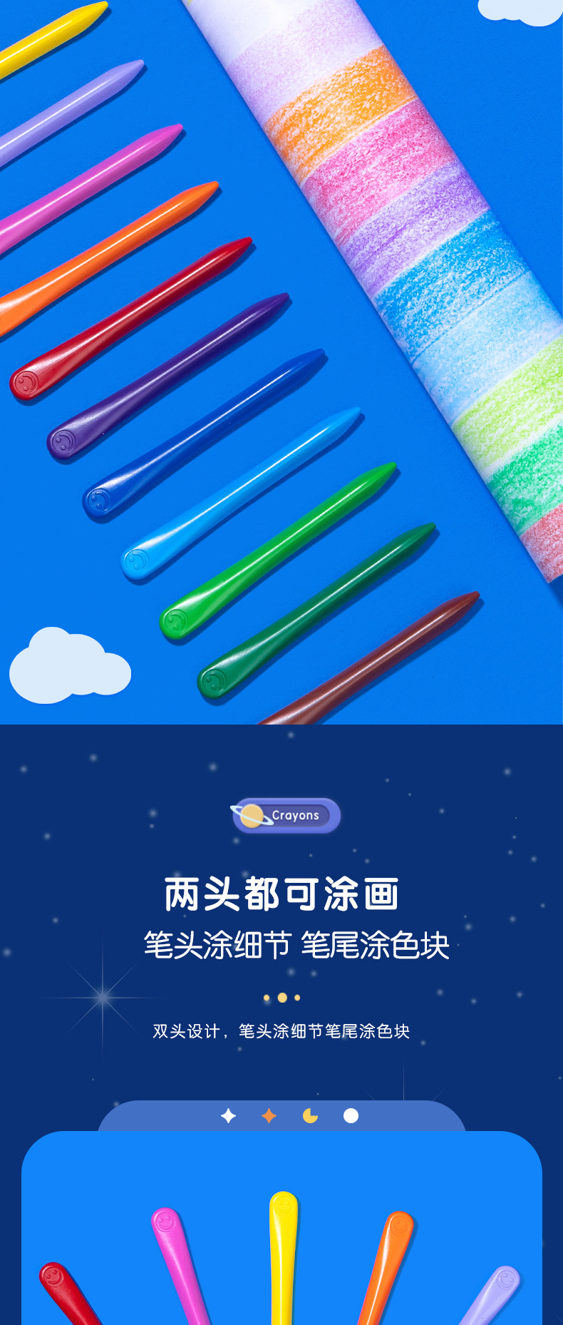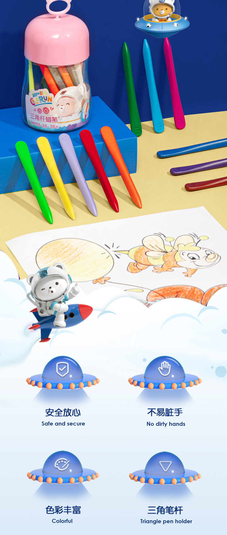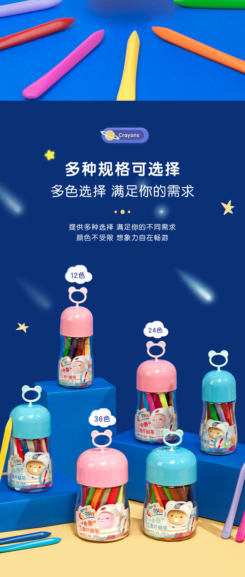得力欧盟认证HM715塑料蜡笔 不脏手儿童安全无毒不沾手画笔 幼儿园宝宝彩笔