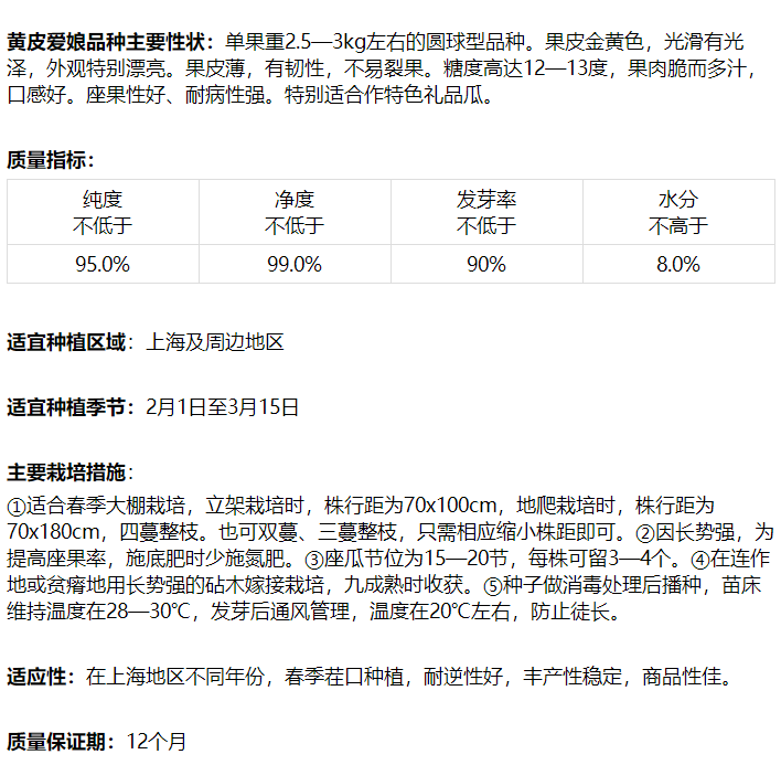 [专业种子] “帕丽斯”网纹甜瓜种子