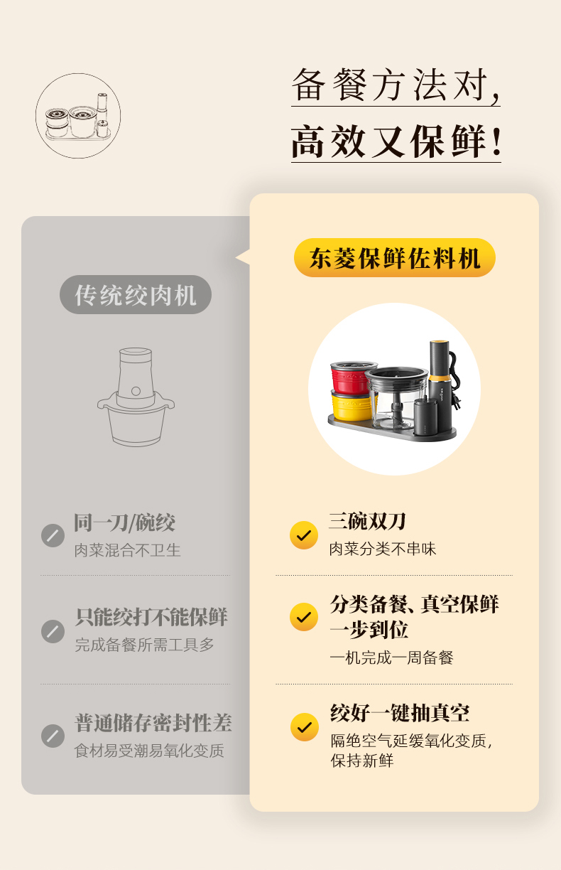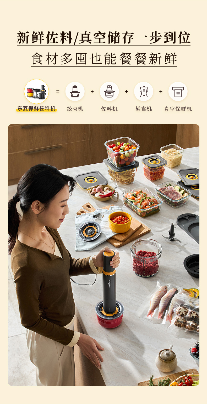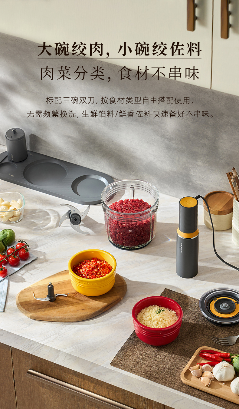 东菱保鲜佐料绞肉切碎机可抽真空1L+1L